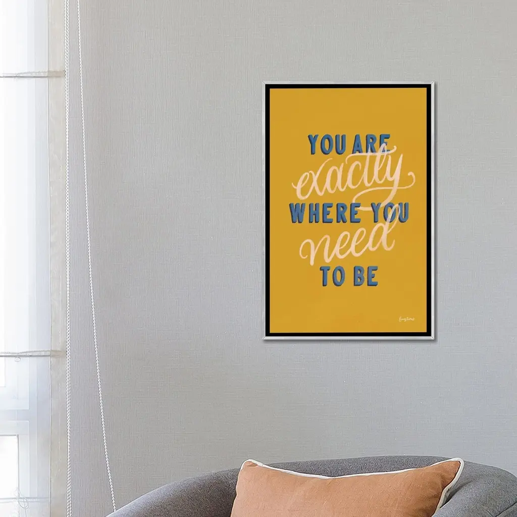 Add a touch of inspiration to your space with the iCanvas "Encouraging Words - Exactly" by Becky Thorns Framed artwork. This high-quality Giclee canvas artwork is crafted in the USA using artist-grade canvas, giving it the texture and look of a fine-art painting. Professionally hand-stretched and stapled over North American pine-wood bars in Gallery Wrap style, this artwork is ready to hang and showcases a "floating" illusion with a 3/8" space between the art and frame. The fade-resistant archival inks ensure vibrant color reproduction that will last for decades, making this contemporary piece a timeless addition to your home or office.Features: