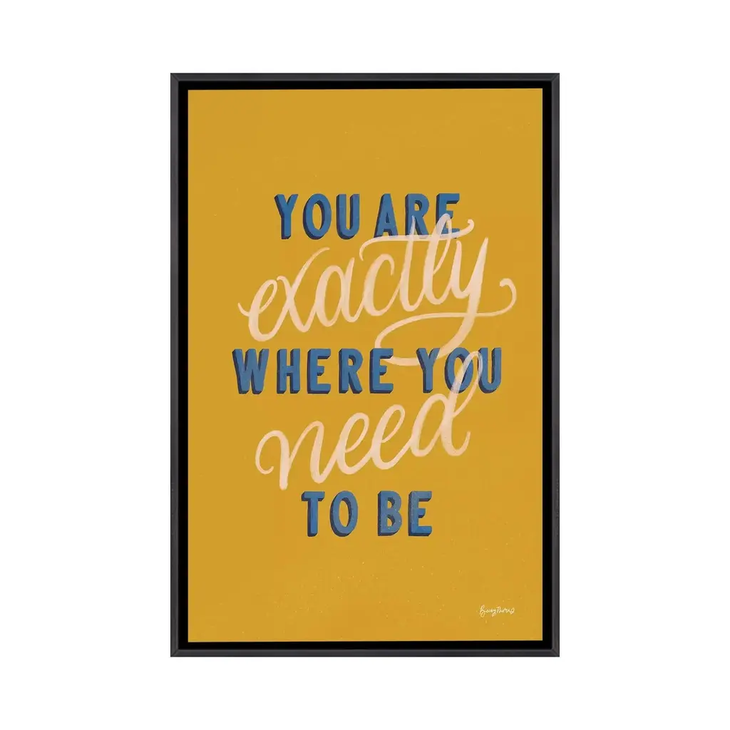 Add a touch of inspiration to your space with the iCanvas "Encouraging Words - Exactly" by Becky Thorns Framed artwork. This high-quality Giclee canvas artwork is crafted in the USA using artist-grade canvas, giving it the texture and look of a fine-art painting. Professionally hand-stretched and stapled over North American pine-wood bars in Gallery Wrap style, this artwork is ready to hang and showcases a "floating" illusion with a 3/8" space between the art and frame. The fade-resistant archival inks ensure vibrant color reproduction that will last for decades, making this contemporary piece a timeless addition to your home or office.Features: