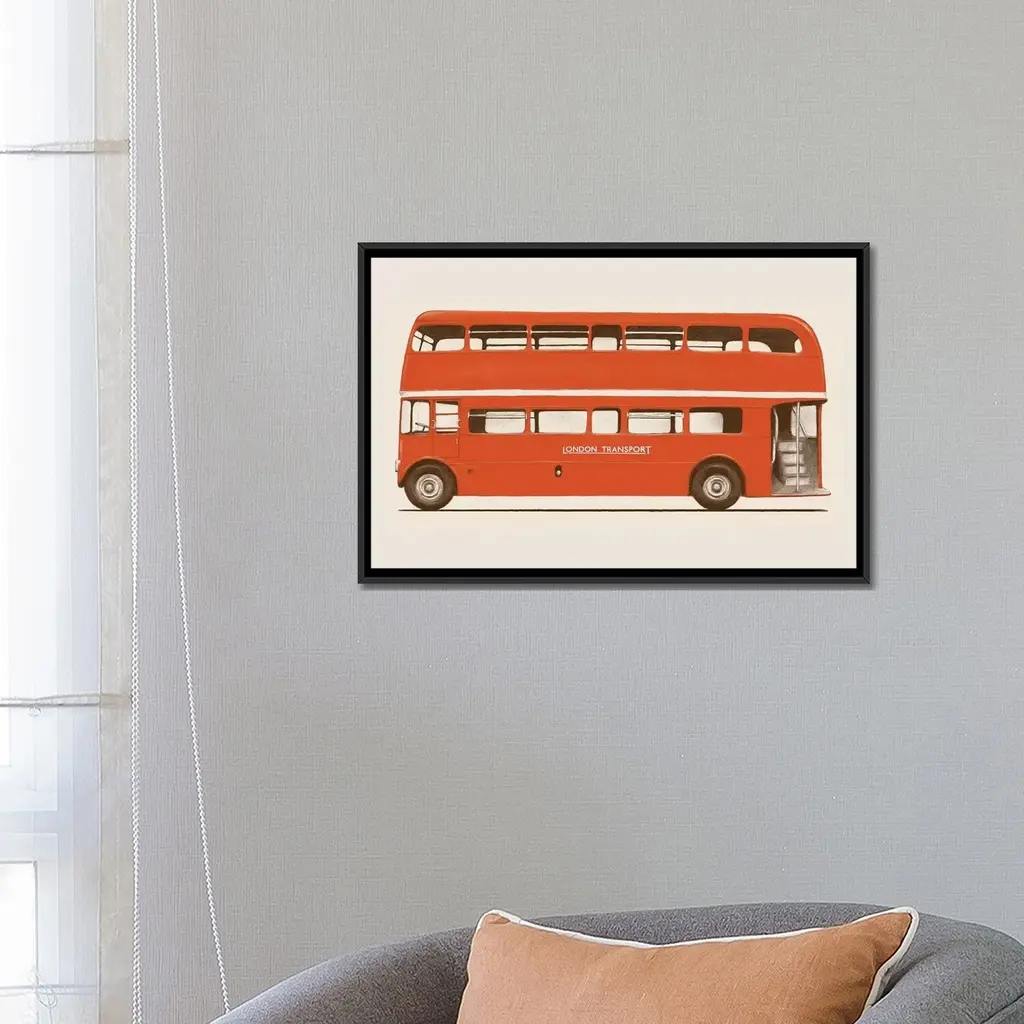 Icanvas "English Bus (London Transport Double-Decker)" By Florent Bodart Framed - Black - 26x40