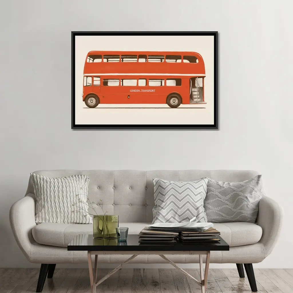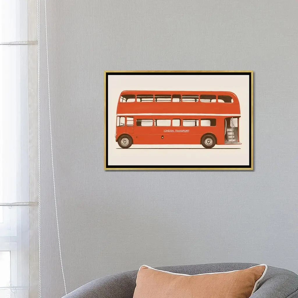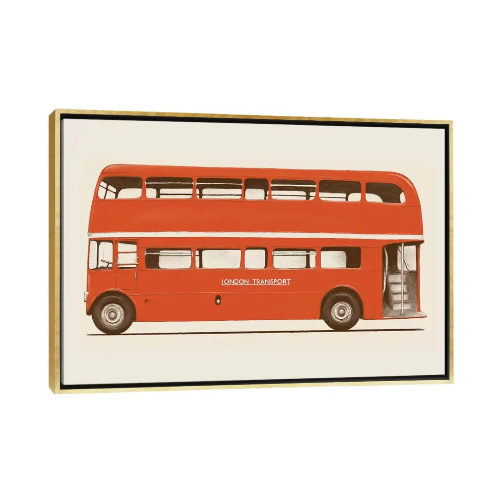 Icanvas "English Bus (London Transport Double-Decker)" By Florent Bodart Framed - Gold - 32x48