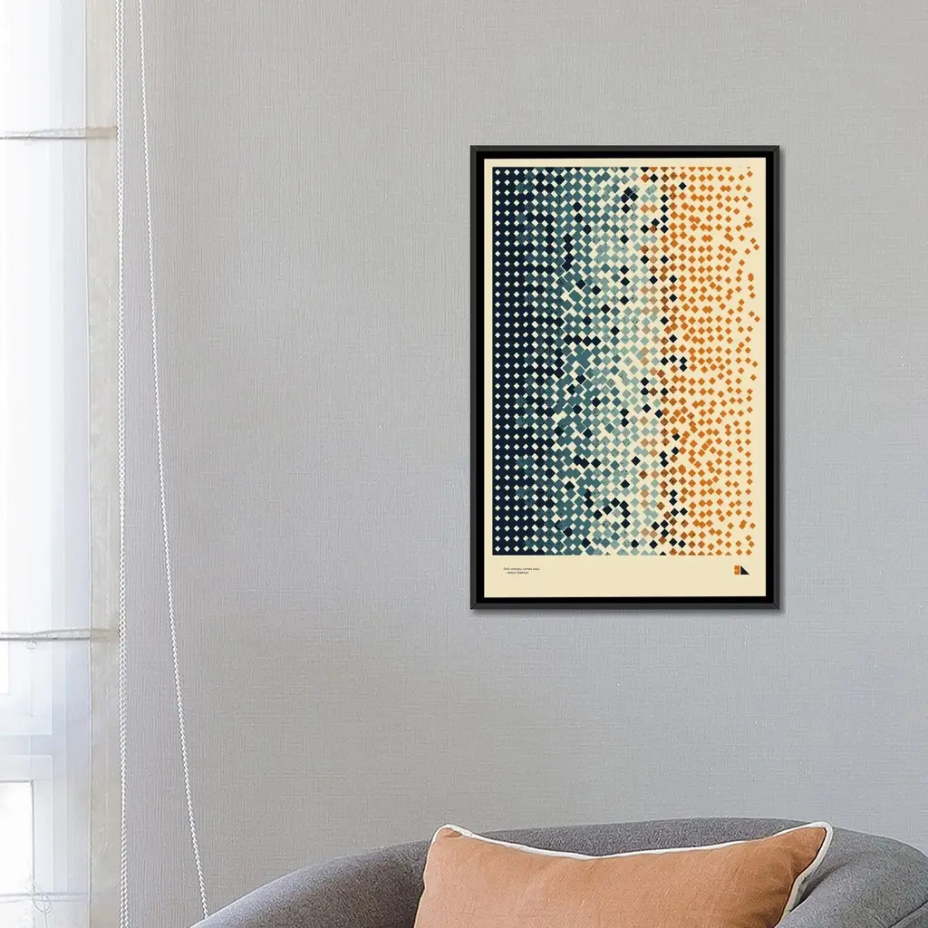 Great Art Deserves to be on Canvas! Unlike thin posters and paper prints, Giclee canvas artwork offers the texture, look and feel of fine-art paintings. This artwork is crafted in the USA with artist-grade canvas, professionally hand-stretched and stapled over North American pine-wood bars in Gallery Wrap style; a method utilized by artists to present artwork in galleries. Your Gallery-Wrapped Canvas comes mounted to a 2 inch thick, elegant hard wood frame. The art is inset, leaving a 3/8" space between the art and frame; creating a "floating" illusion. Fade-resistant archival inks guarantee perfect color reproduction that remains vibrant for decades even when exposed to strong light. Add brilliance in color and exceptional detail to your space with this contemporary and uncompromising style!