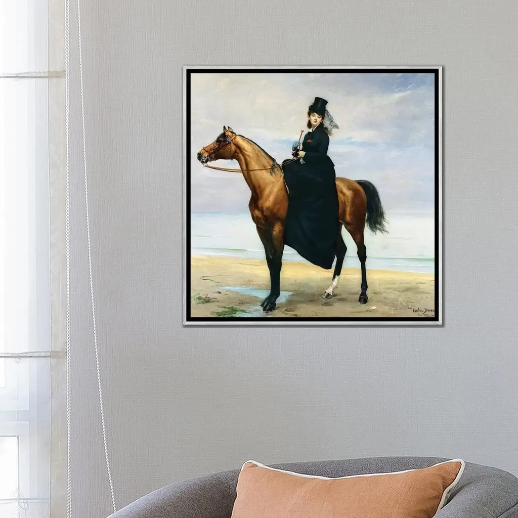 Icanvas "Equestrian Portrait Of Mademoiselle Croizette, 1873" By Charles Emile Auguste Carolus-Duran Framed - 26x26 - Charcoal