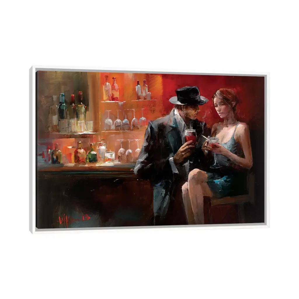 Icanvas "Evening In The Bar I" By Willem Haenraets Framed Canvas Print - Gold - 18x26