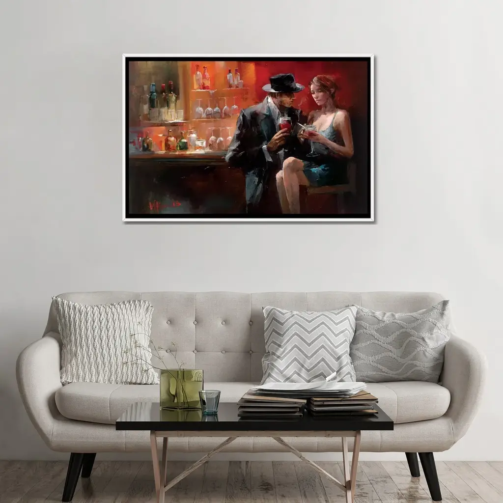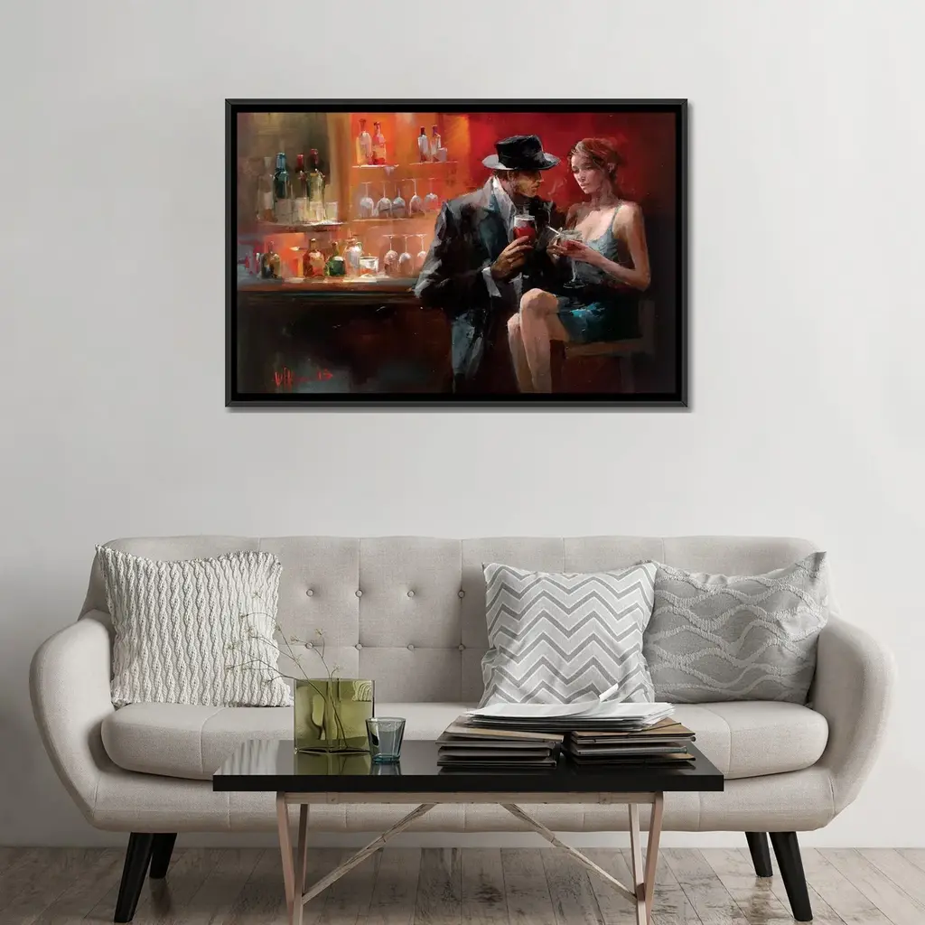Icanvas "Evening In The Bar I" By Willem Haenraets Framed Canvas Print - Gold - 26x40