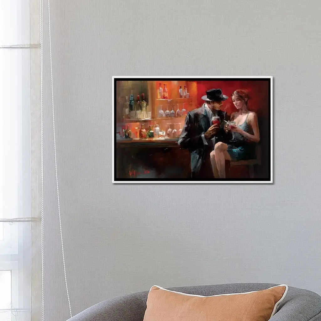 Icanvas "Evening In The Bar I" By Willem Haenraets Framed Canvas Print - Gold - 32x48