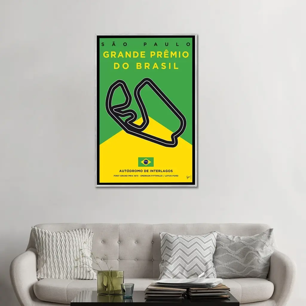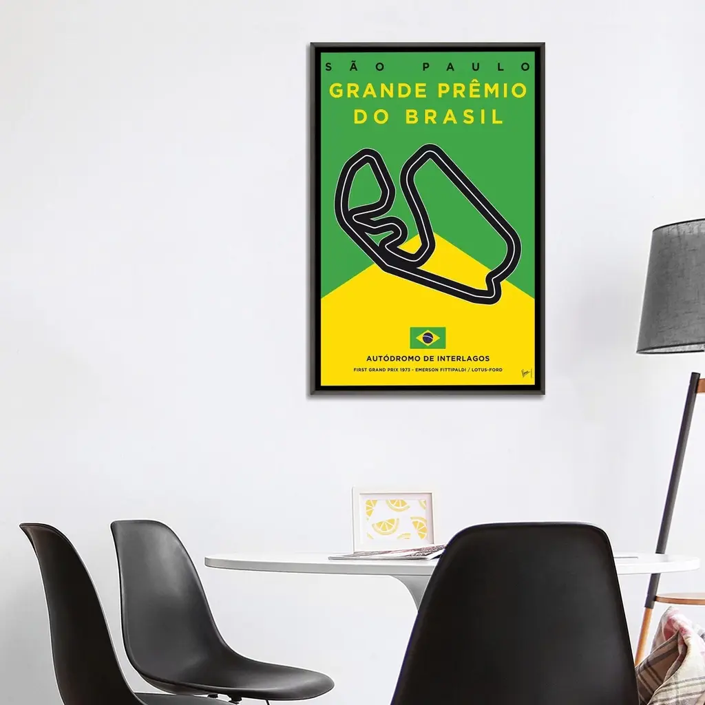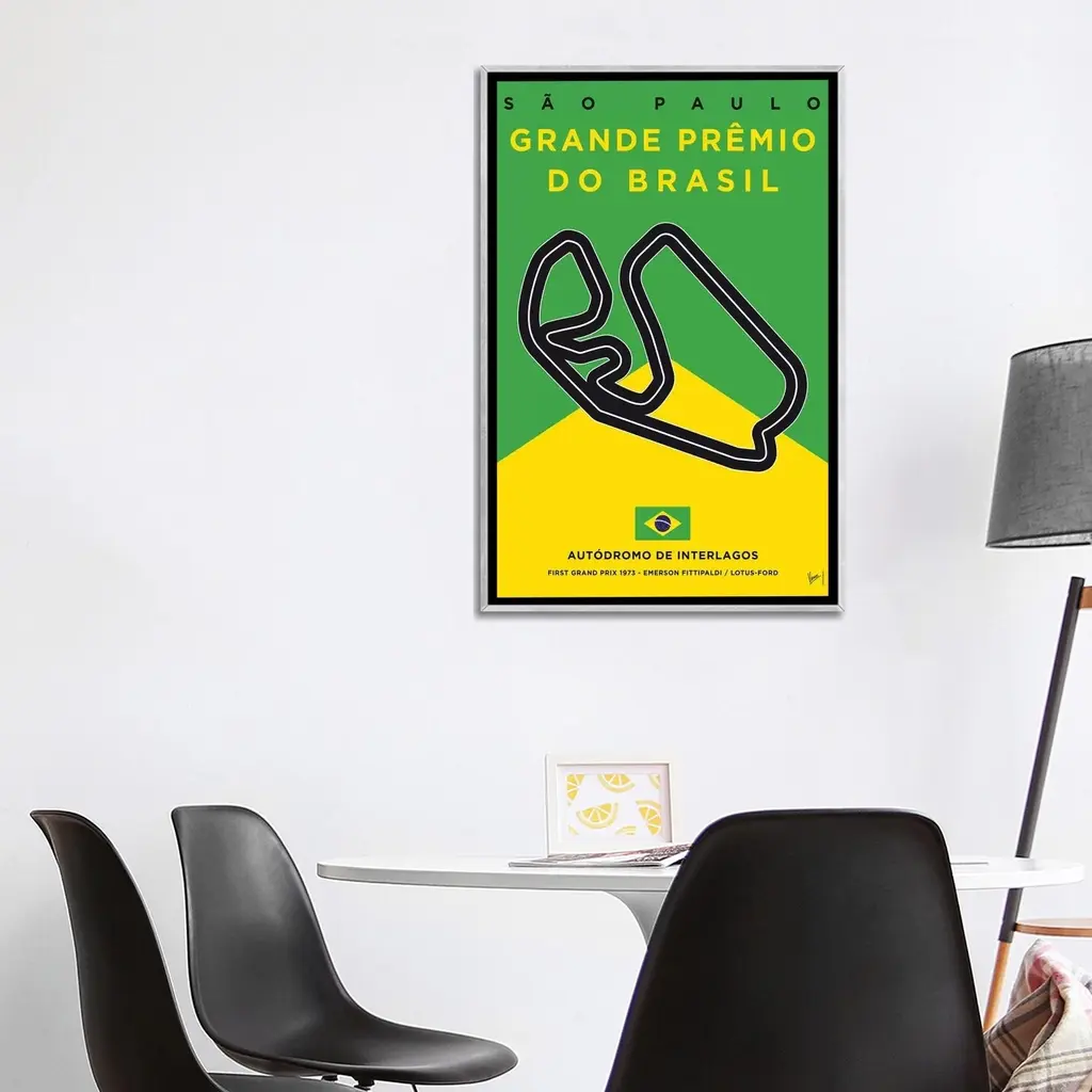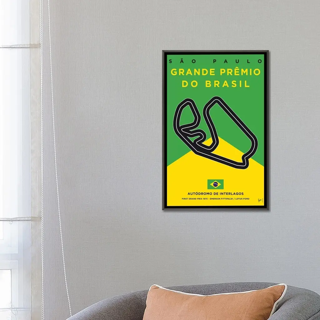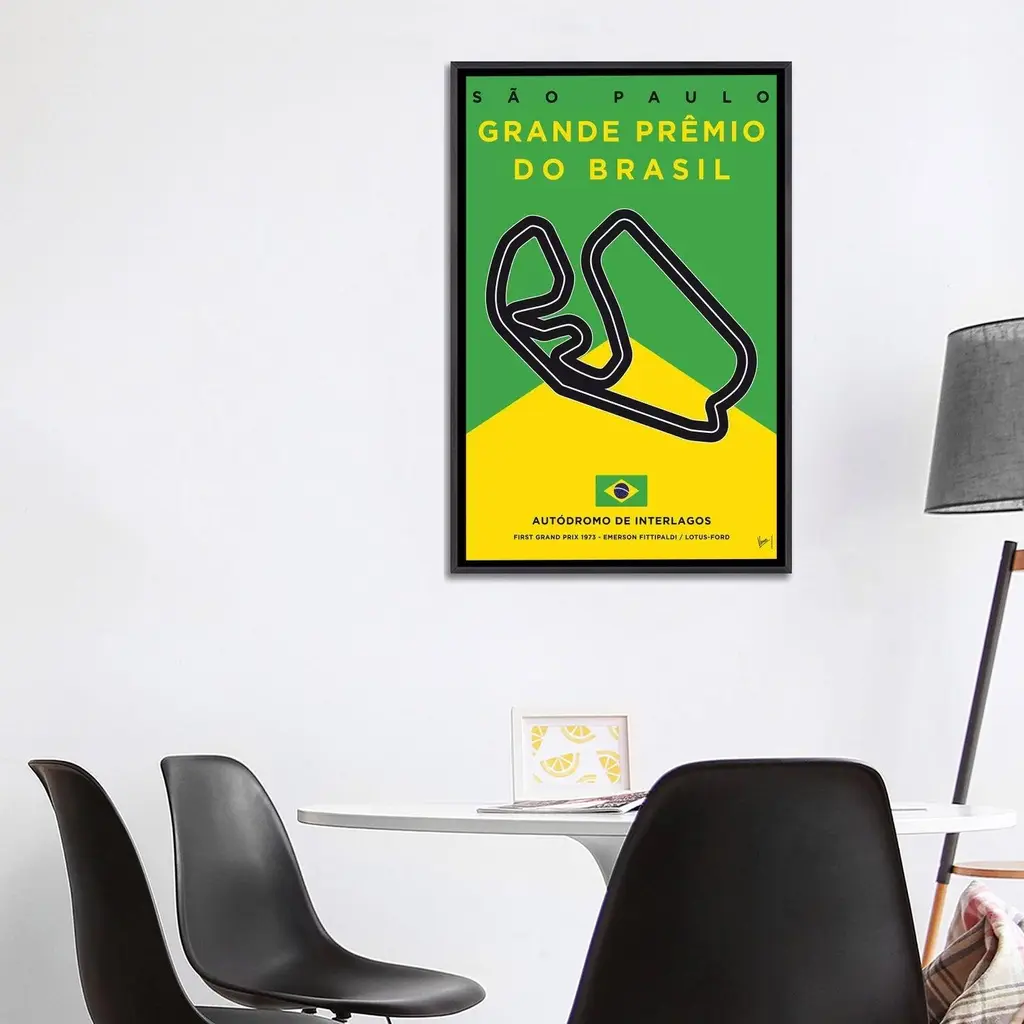 Icanvas "F1 Interlagos Track Minimal Poster" By Chungkong Framed - Ebony - 48x32