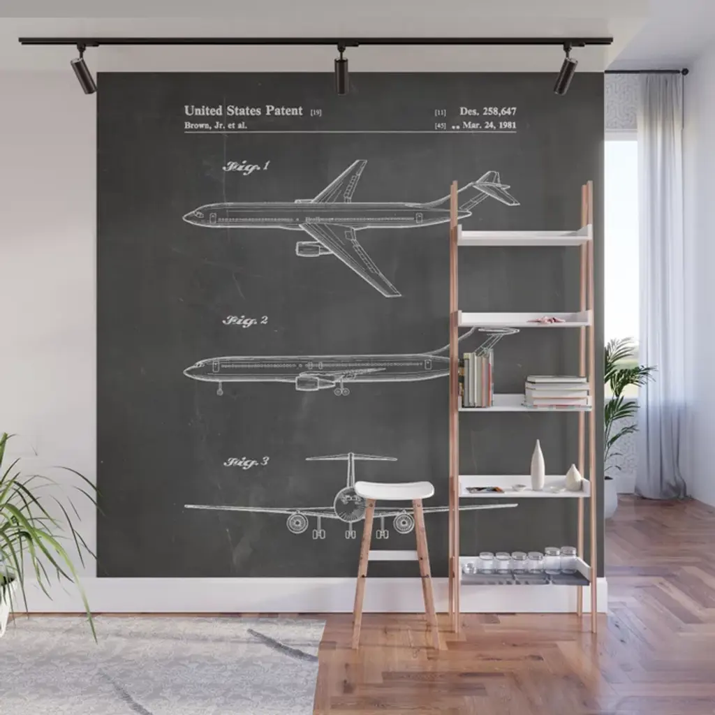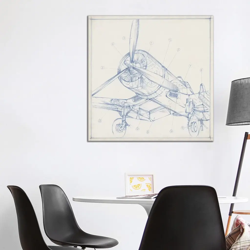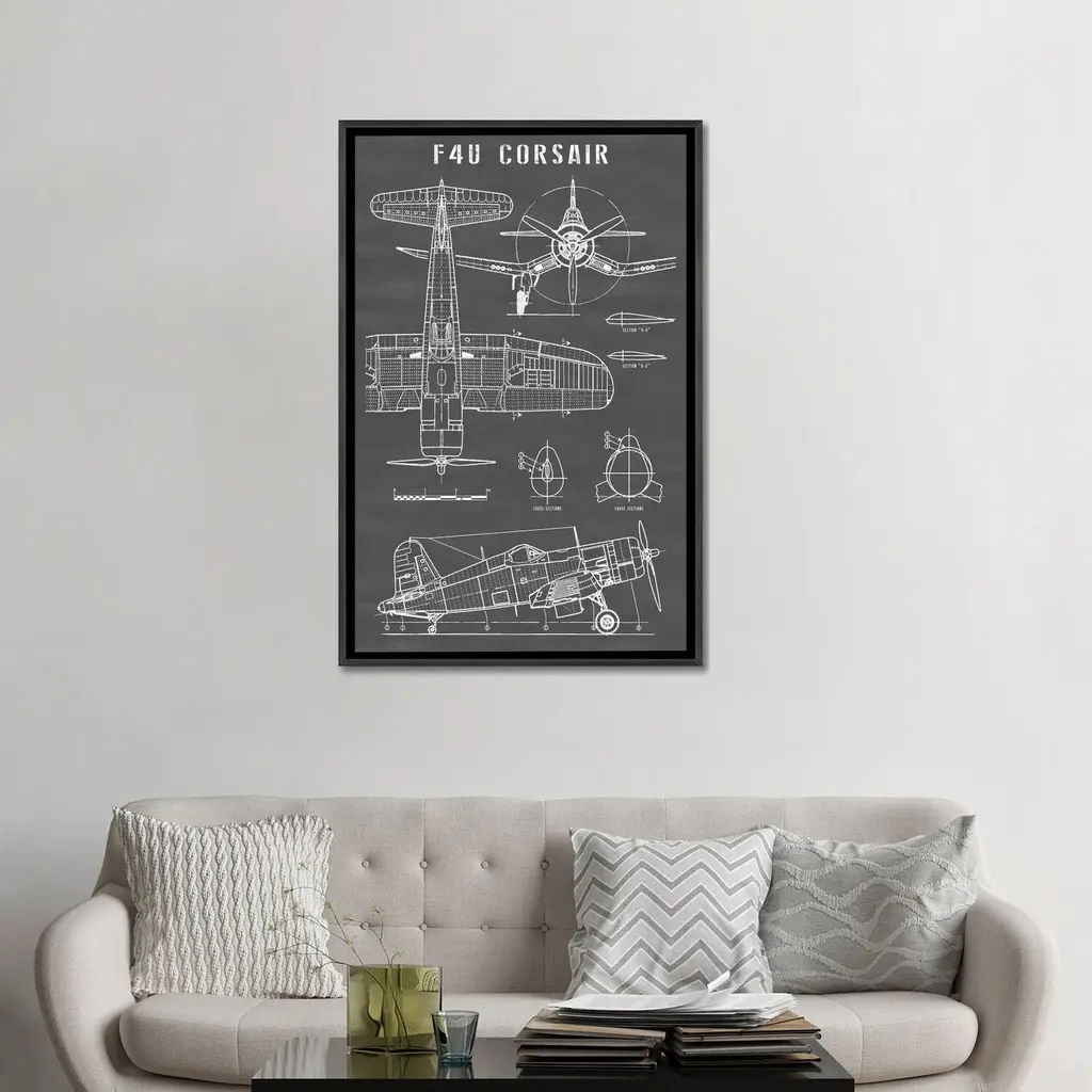 Icanvas "F4u Corsair Vintage Navy Airplane Black" By Action Blueprints Framed - Charcoal - 40x26