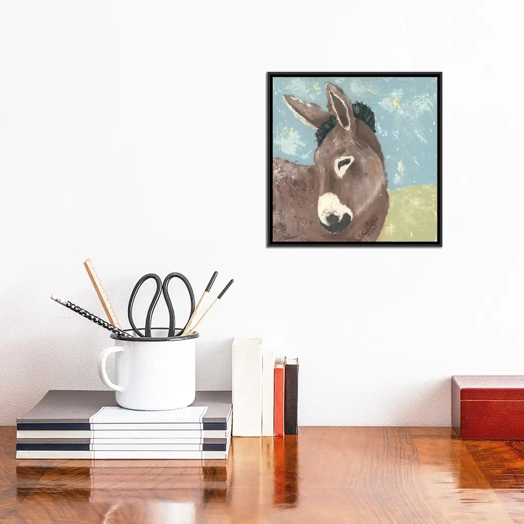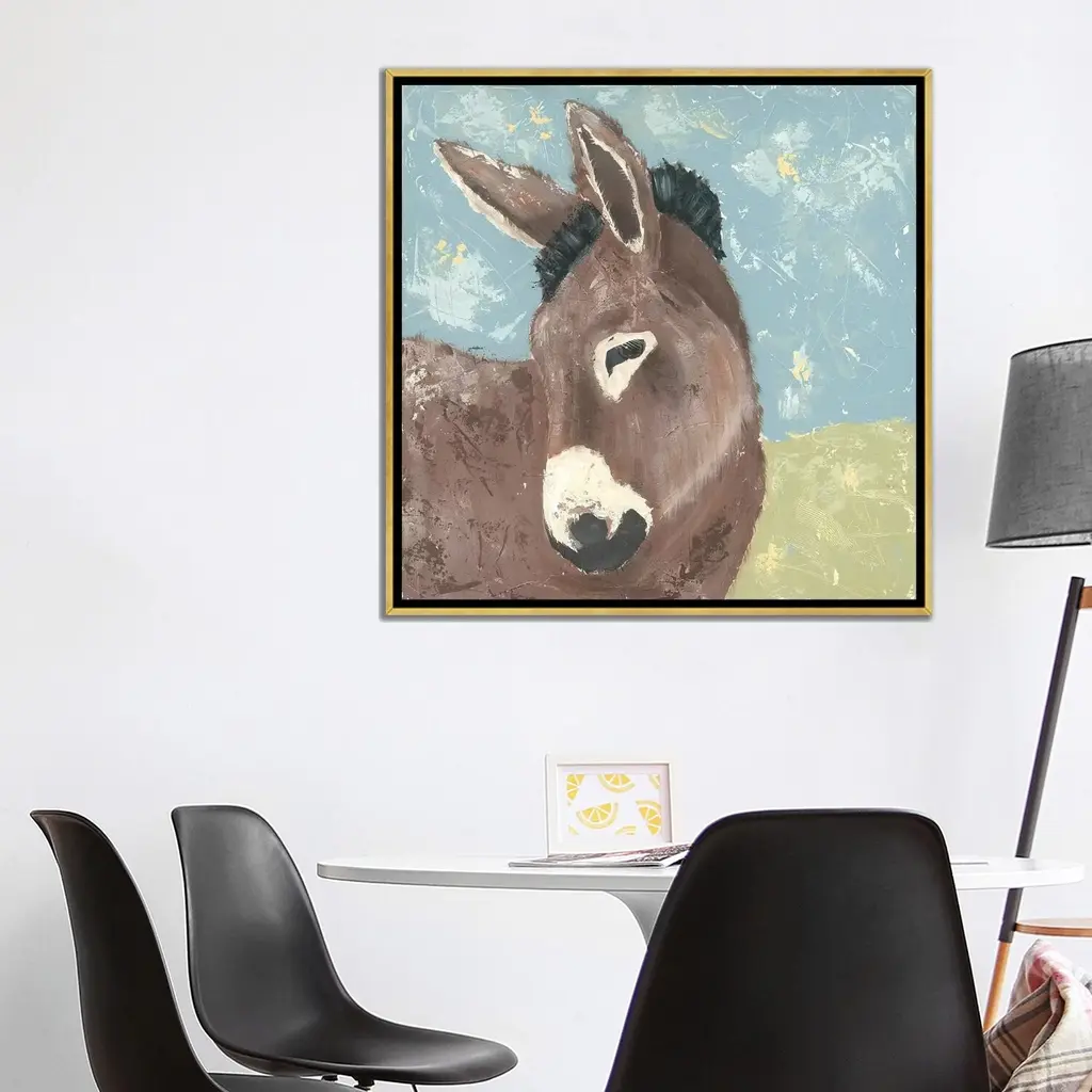 Icanvas "Farm Life-Donkey" By Jade Reynolds Framed Canvas Print - Gold - 37x37