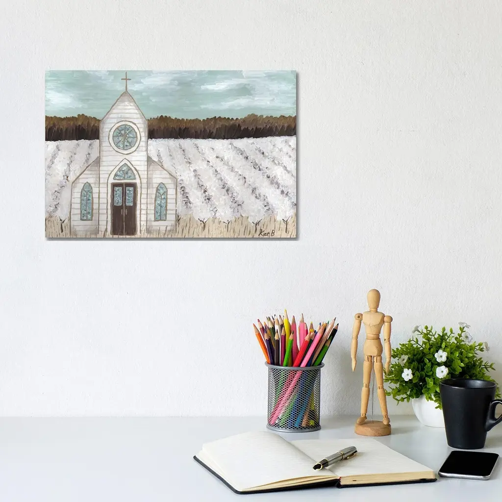 Icanvas "Farm Sketch Church Landscape" By Kathleen Bryan Canvas Print - 8X12x0.75
