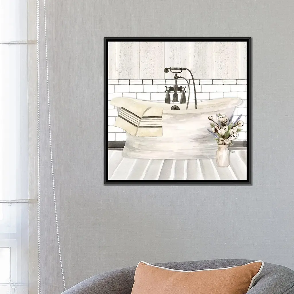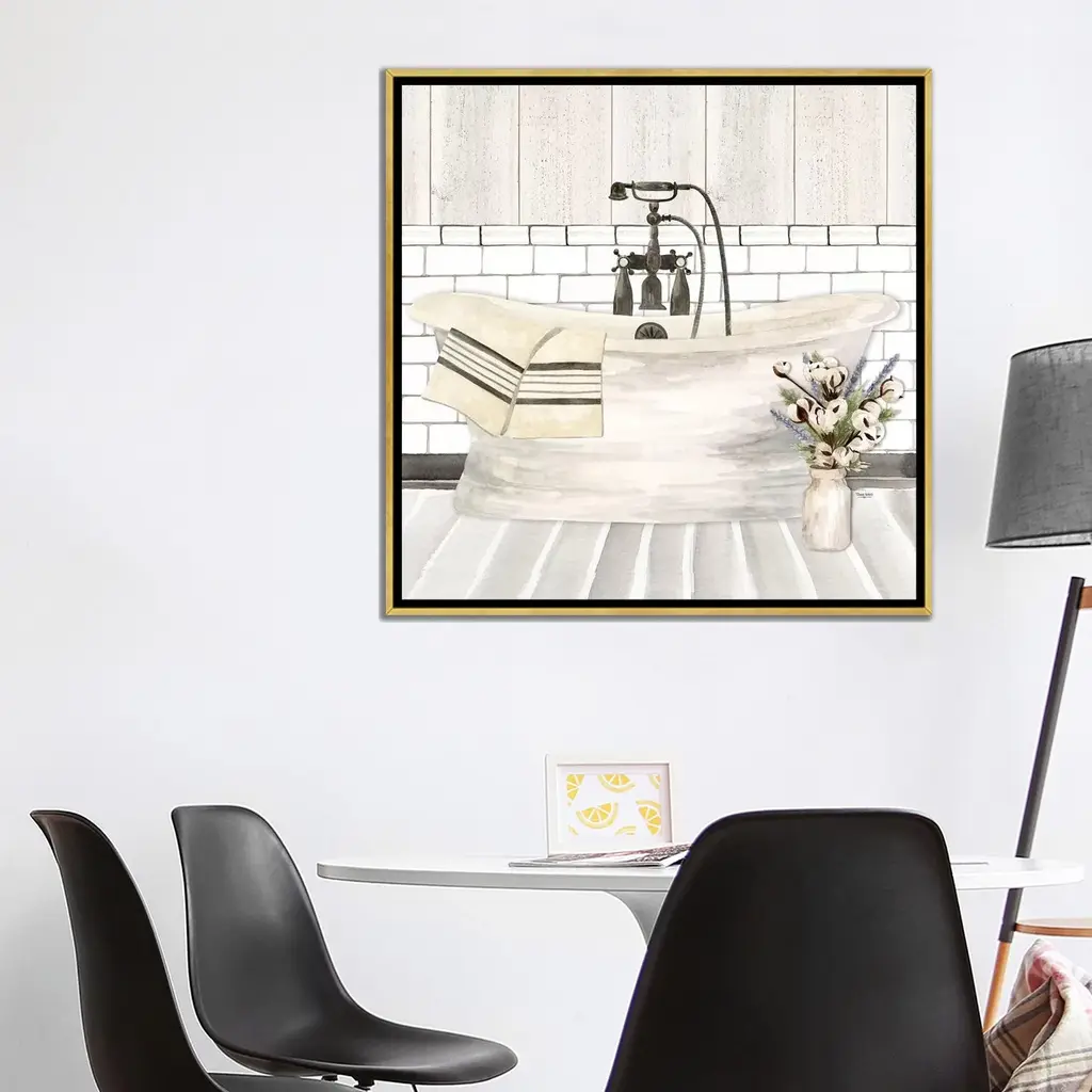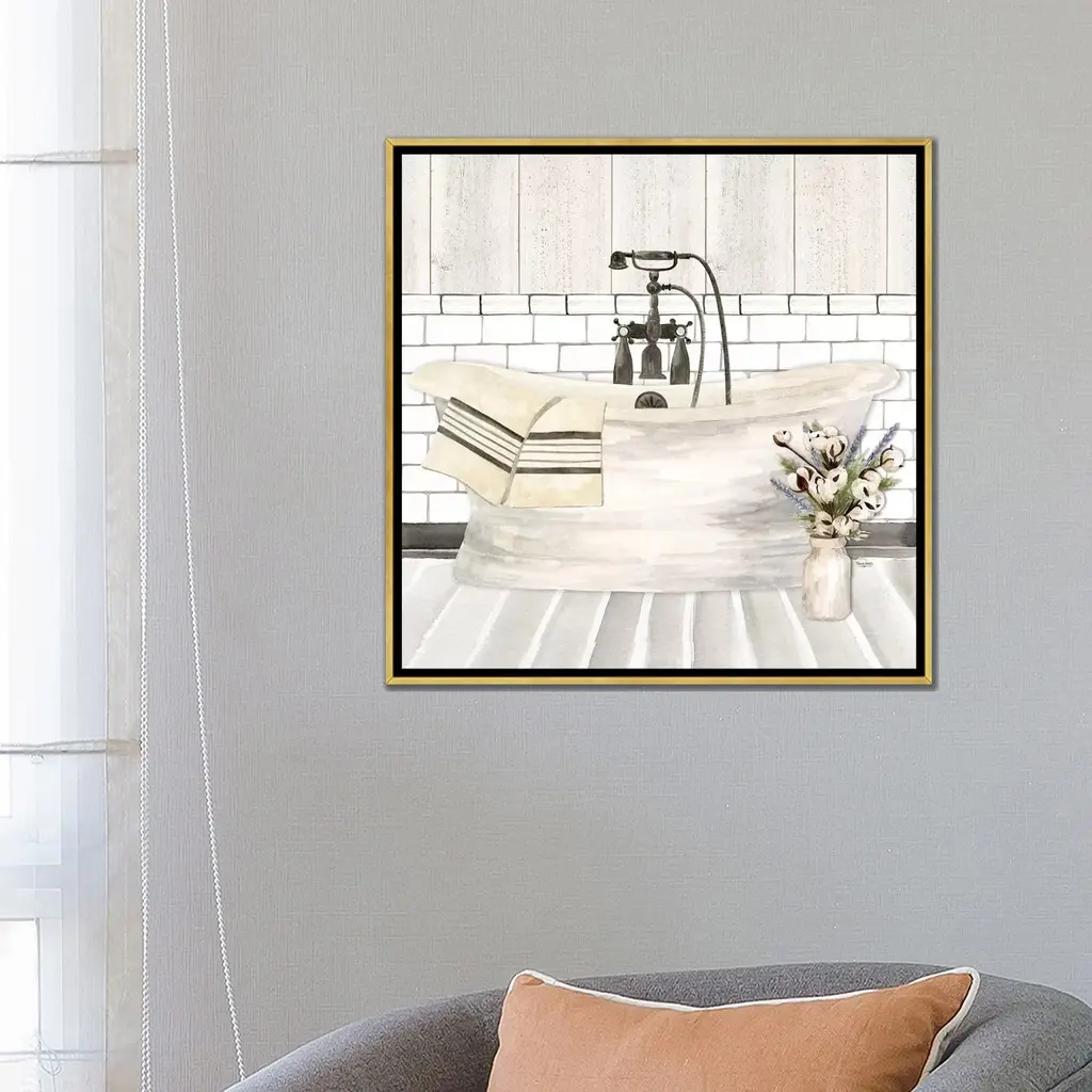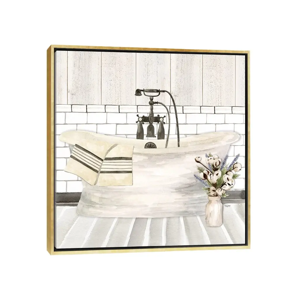 Icanvas "Farmhouse Bath I Tub" By Tara Reed Framed Canvas Print - Gold - 12x12