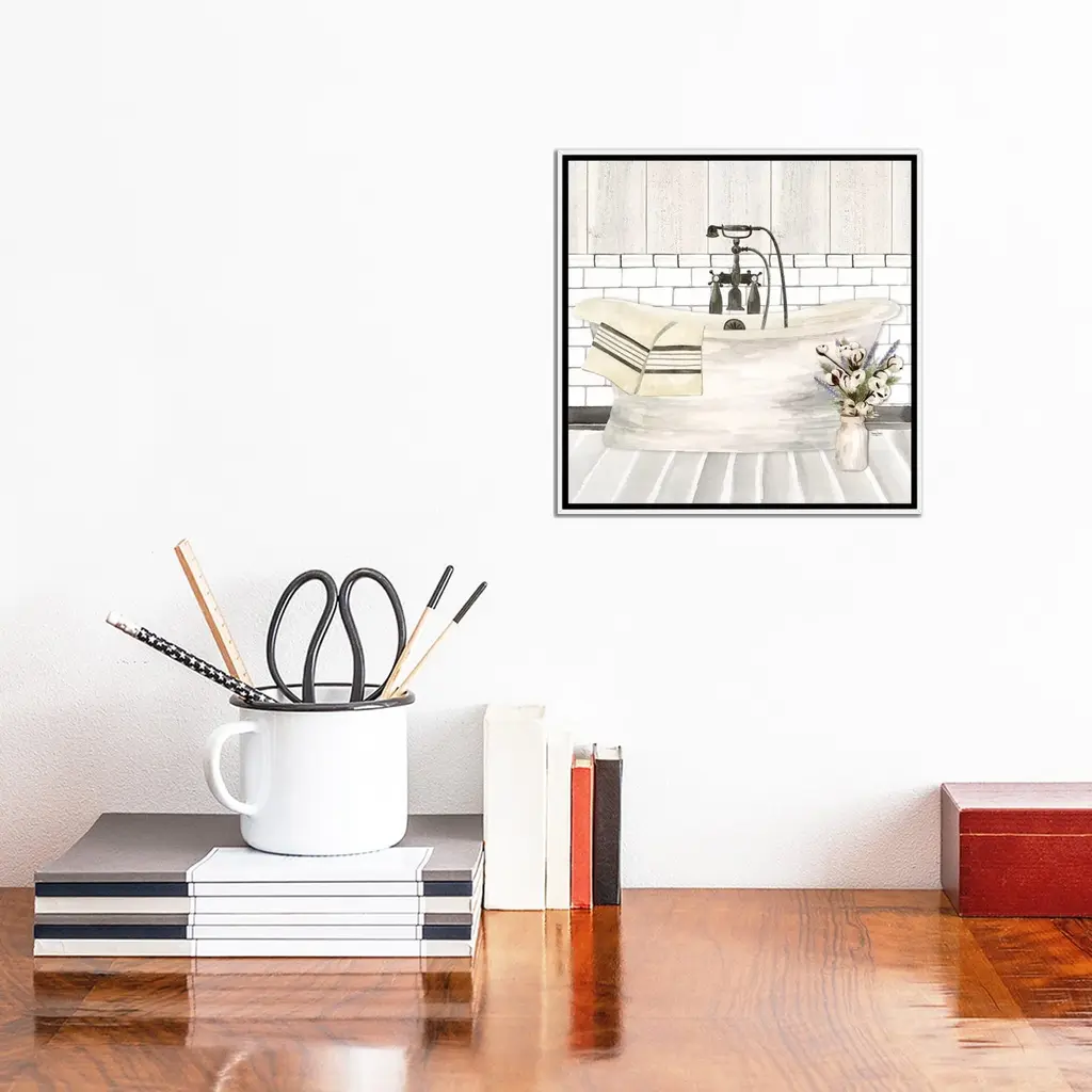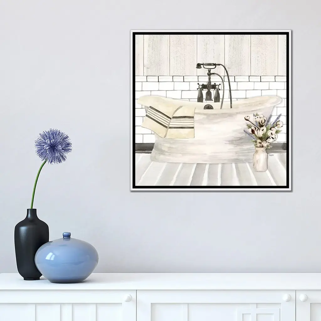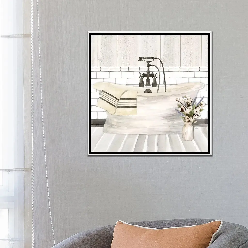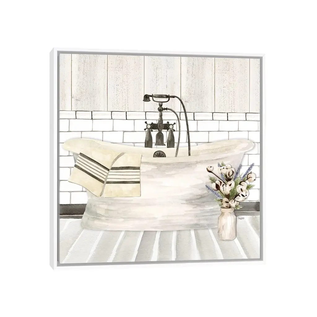 Icanvas "Farmhouse Bath I Tub" By Tara Reed Framed Canvas Print - Gold - 18x18