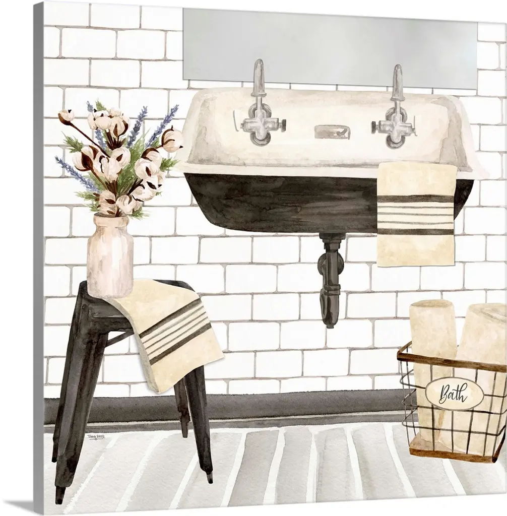 Icanvas "Farmhouse Bath Ii Navy-Sink" By Tara Reed Canvas Print - 12x12x1.5