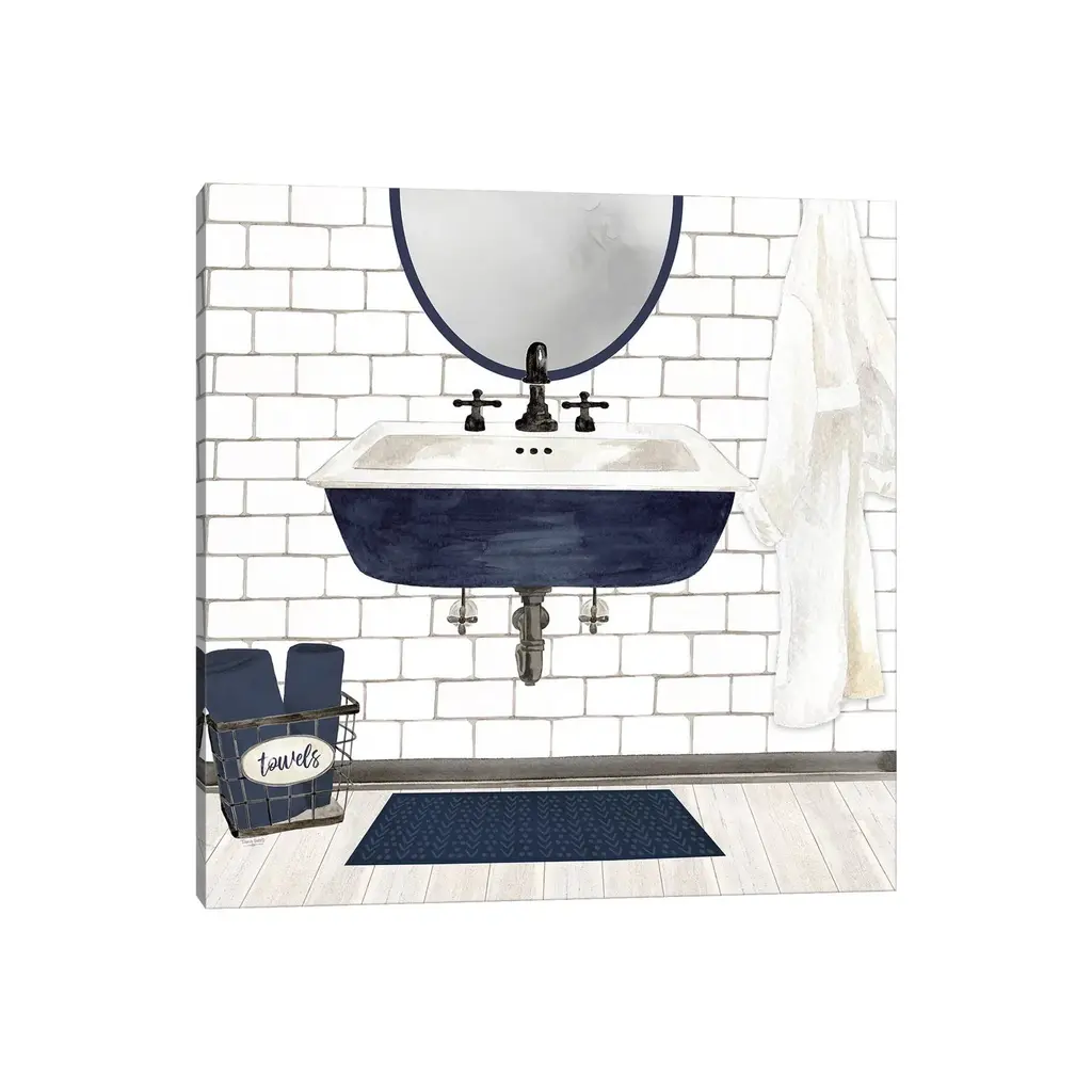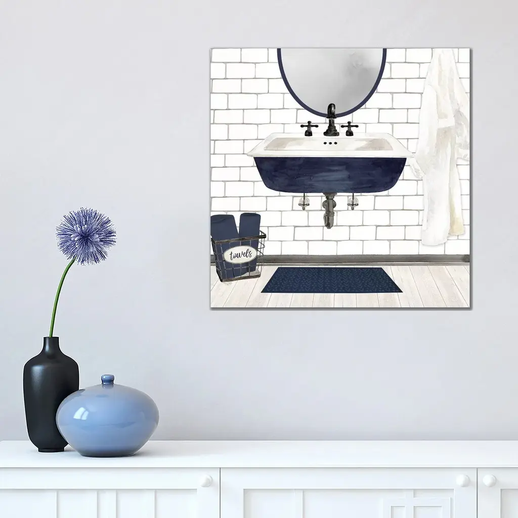 Icanvas "Farmhouse Bath Ii Navy-Sink" By Tara Reed Canvas Print - 18x18x1.5