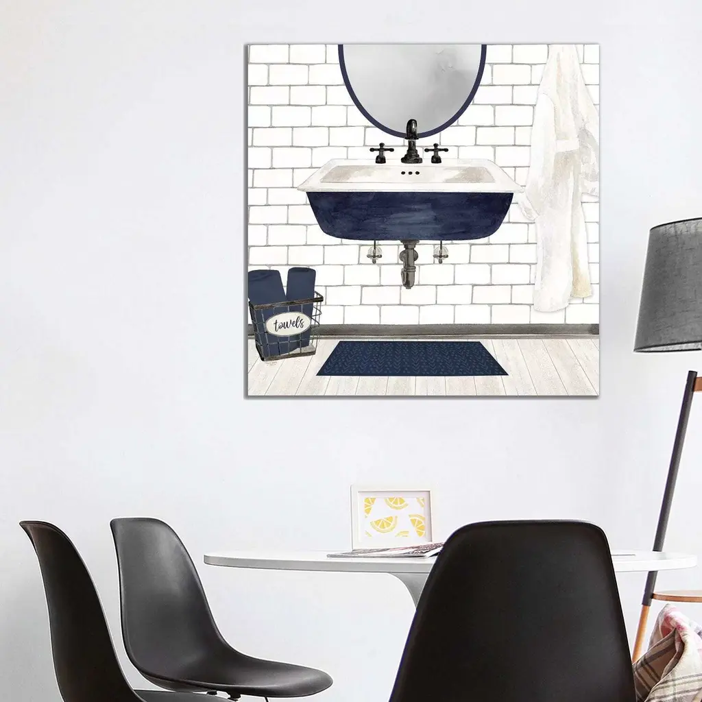 Icanvas "Farmhouse Bath Ii Navy-Sink" By Tara Reed Canvas Print - 37x37x1.5