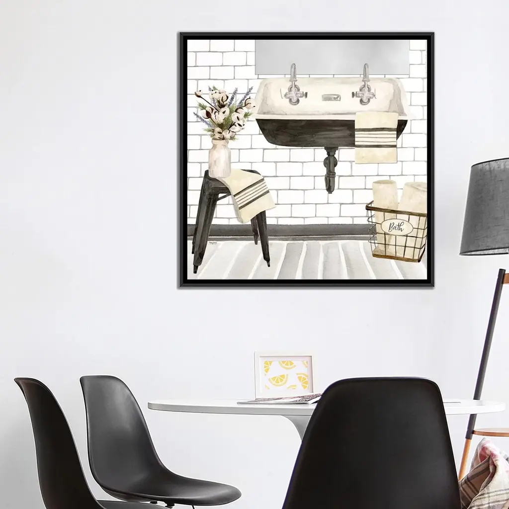 Icanvas "Farmhouse Bath Ii Sink" By Tara Reed Framed Canvas Print - Black - 12x12