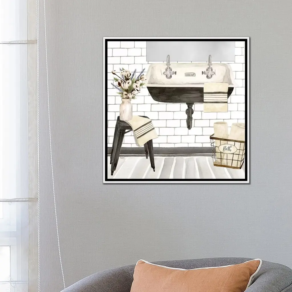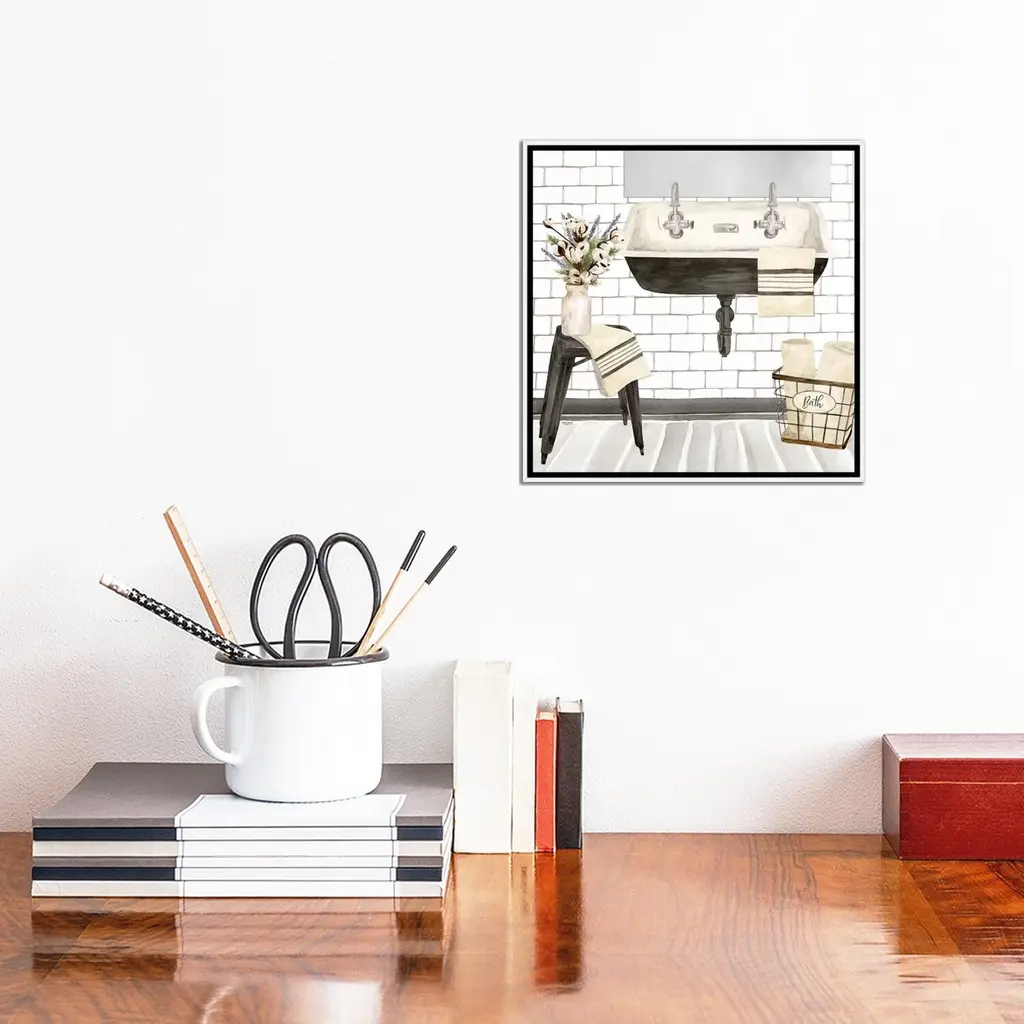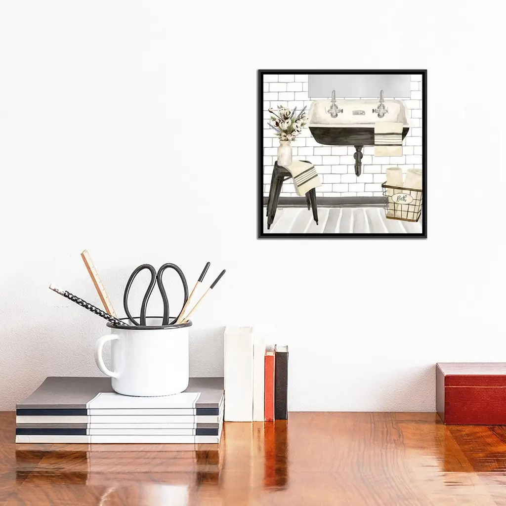 Icanvas "Farmhouse Bath Ii Sink" By Tara Reed Framed Canvas Print - Gold - 18x18