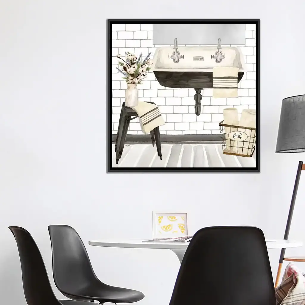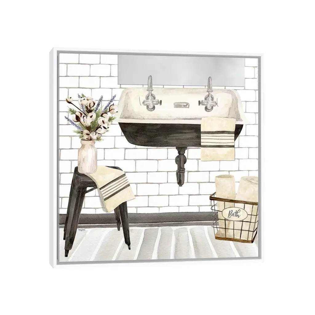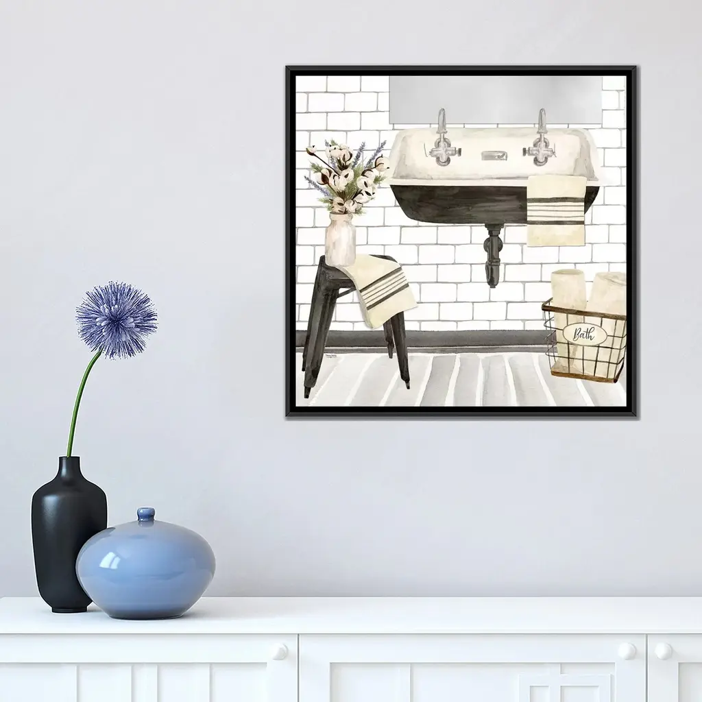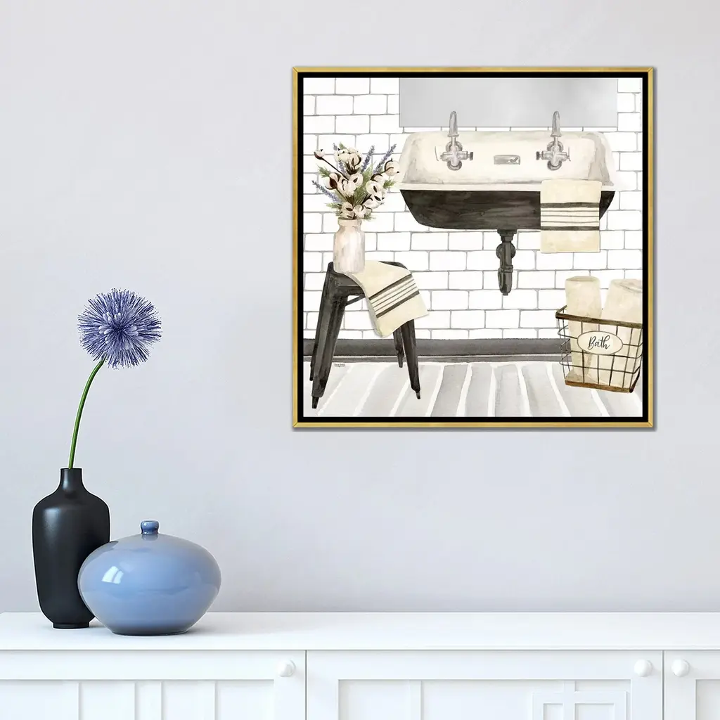 Icanvas "Farmhouse Bath Ii Sink" By Tara Reed Framed Canvas Print - Gold - 26x26