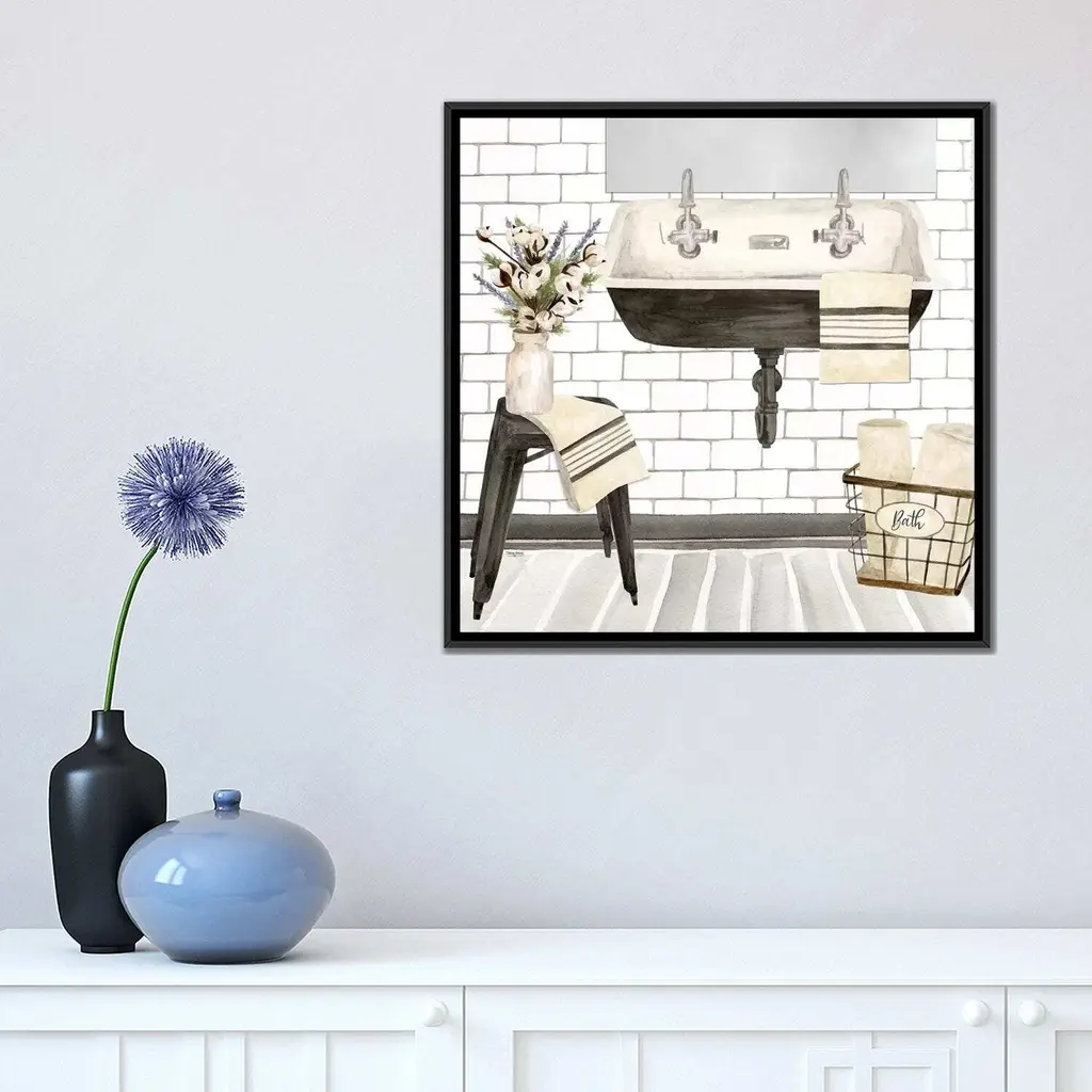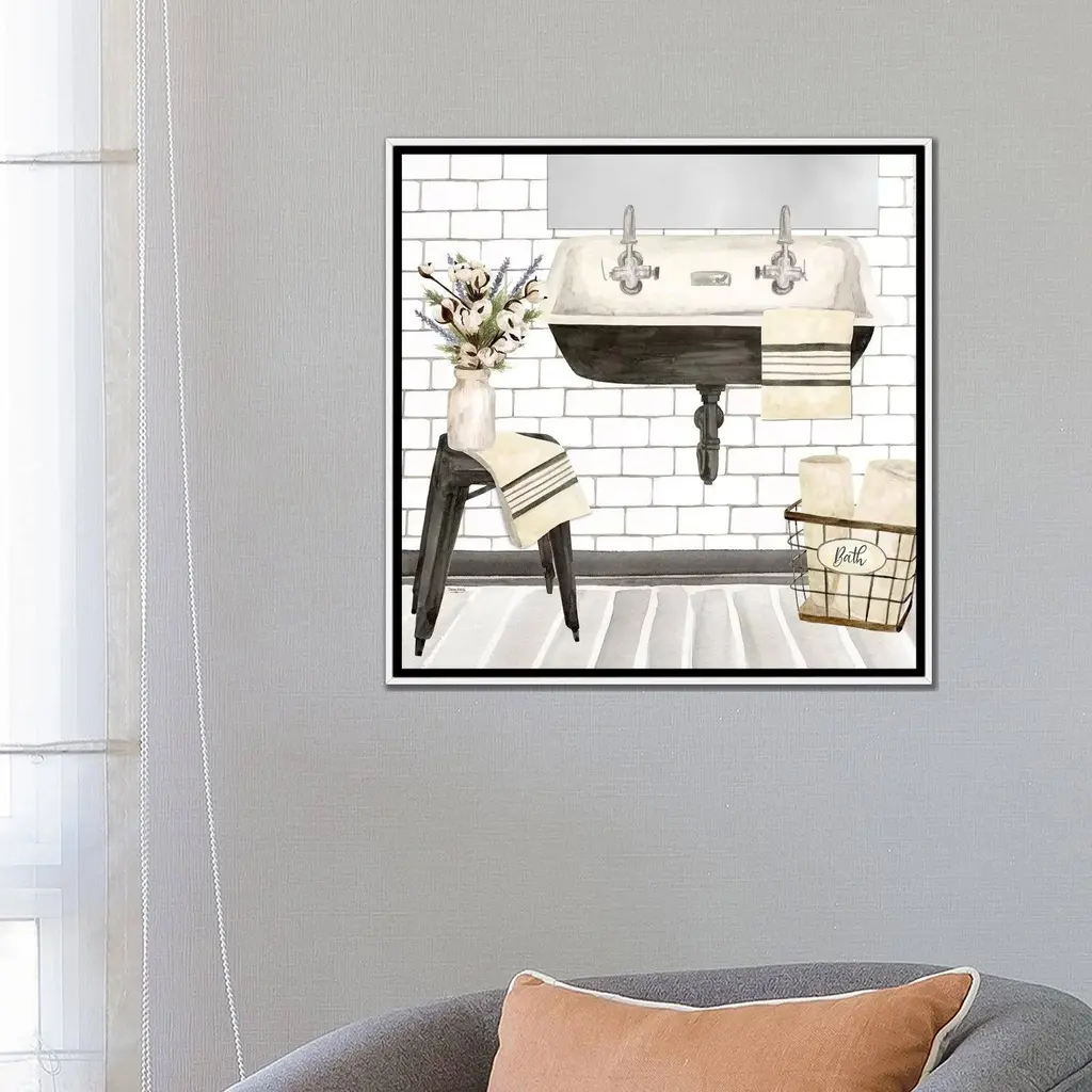 Icanvas "Farmhouse Bath Ii Sink" By Tara Reed Framed Canvas Print - Gold - 37x37