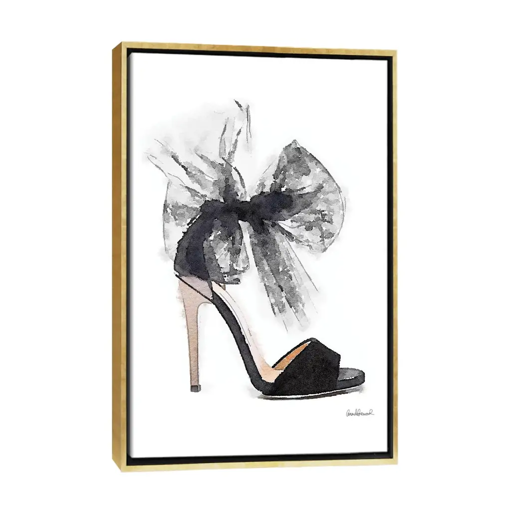 Elevate your space with the iCanvas "Fashion Shoe In Black Sheer" by Amanda Greenwood Framed Canvas Print. Made with artist-grade canvas, this gallery-wrapped artwork offers the texture and feel of fine-art paintings. Professionally hand-stretched and stapled over North American pine-wood bars, it showcases a contemporary and uncompromising style. The fade-resistant archival inks ensure vibrant color reproduction that lasts for decades, even under strong light. Mounted to a 2-inch thick, elegant hardwood frame, the art appears to float, creating a captivating illusion. Transform your space with this high-quality and visually stunning canvas print.Features: