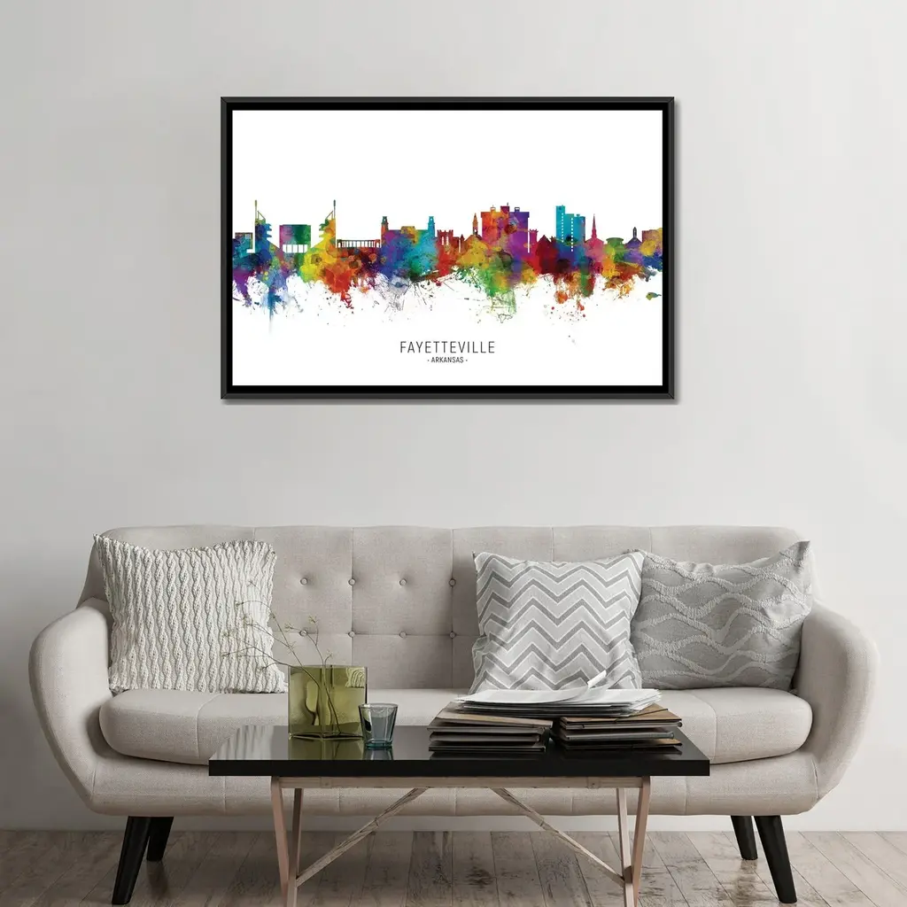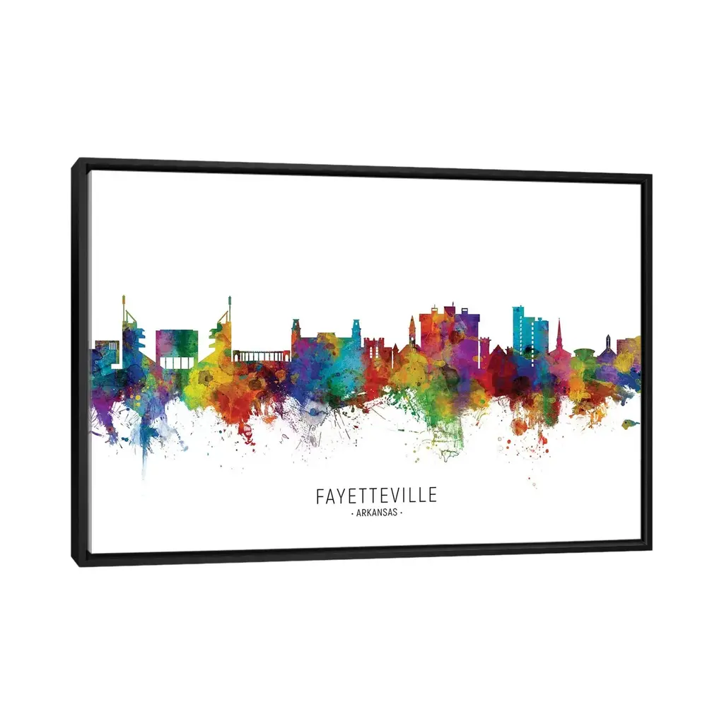 Icanvas "Fayetteville Arkansas Skyline" By Michael Tompsett Framed Canvas Print - Black - 18x26