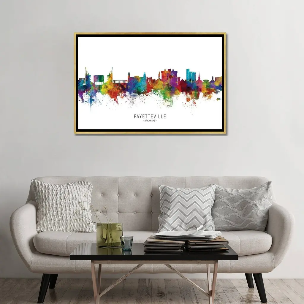 Icanvas "Fayetteville Arkansas Skyline" By Michael Tompsett Framed Canvas Print - Gold - 26x40