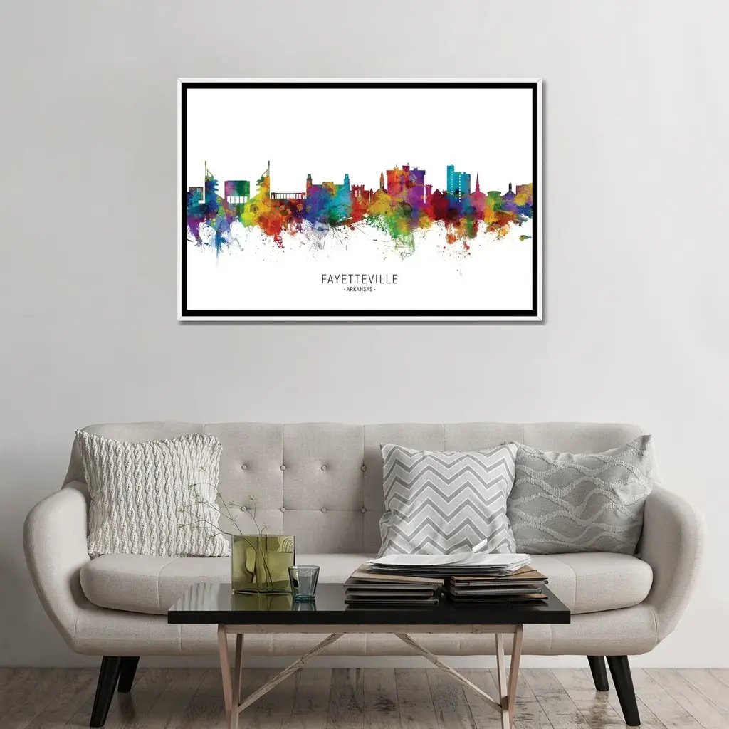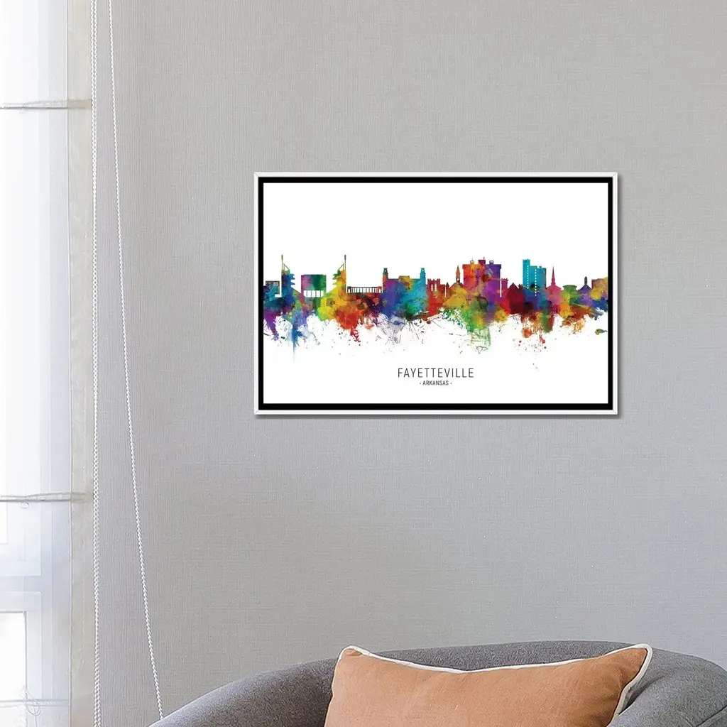 Icanvas "Fayetteville Arkansas Skyline" By Michael Tompsett Framed Canvas Print - White - 32x48
