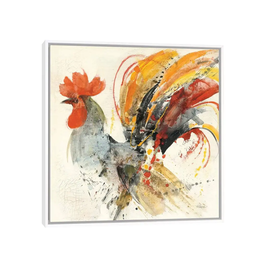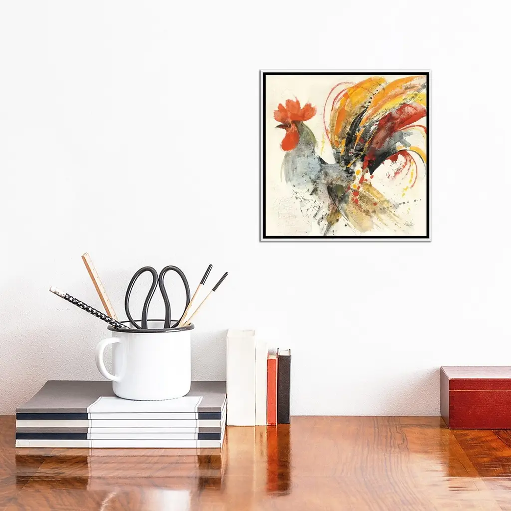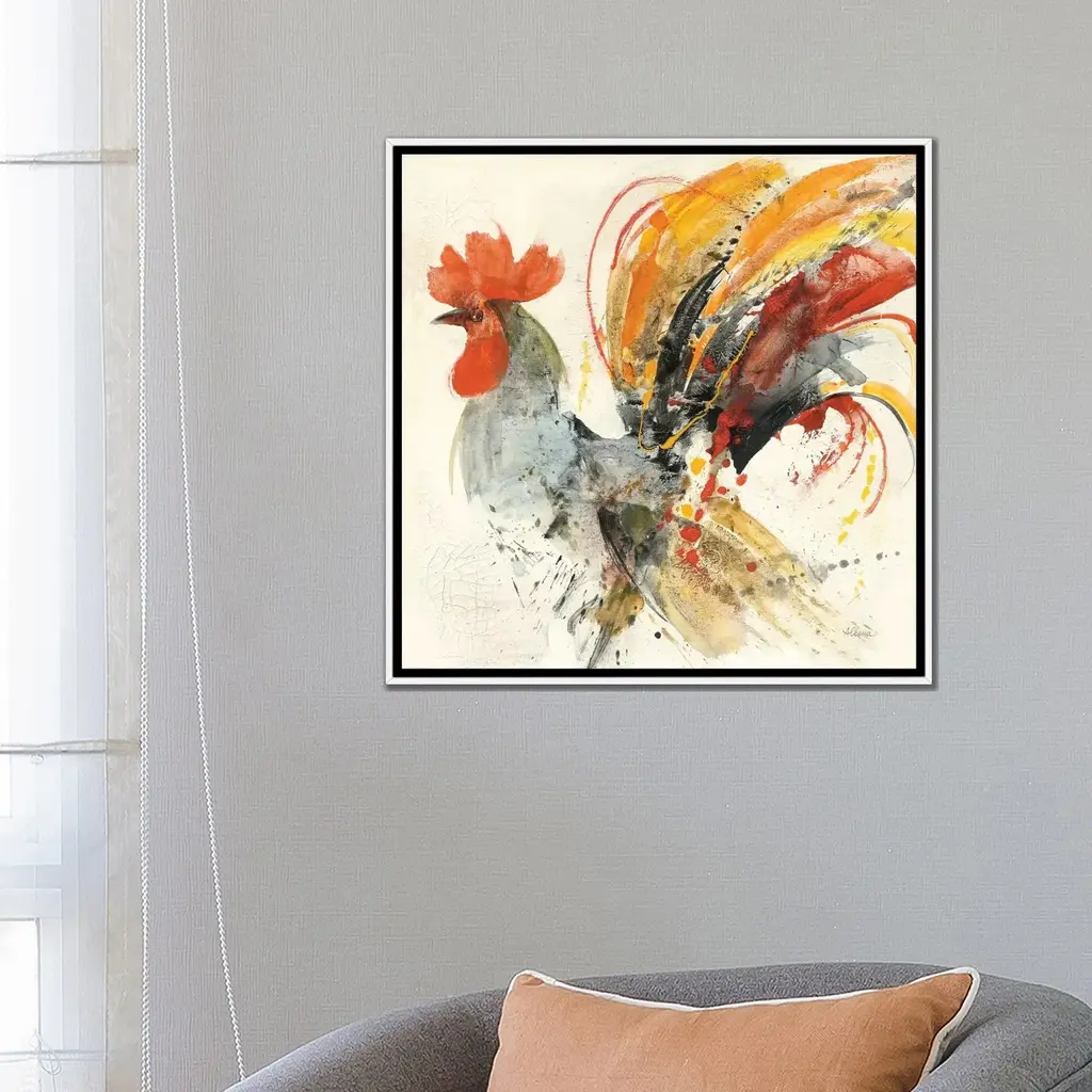 Icanvas "Festive Rooster Ii" By Albena Hristova Framed Canvas Print - Black - 12x12