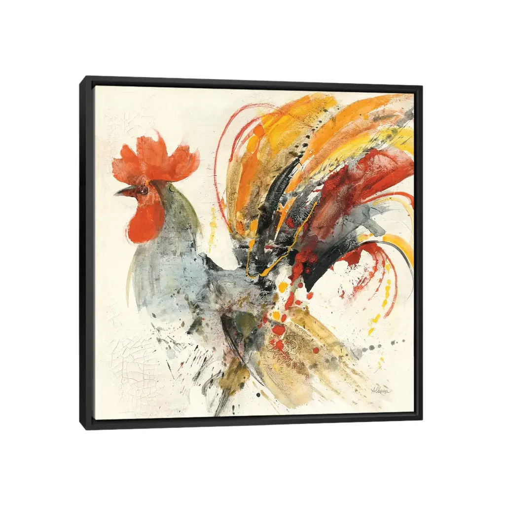 Icanvas "Festive Rooster Ii" By Albena Hristova Framed Canvas Print - Black - 26x26