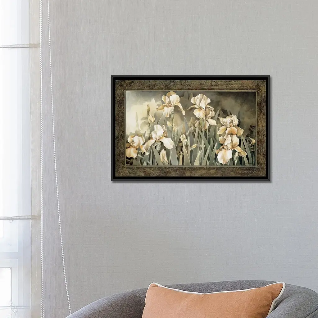Icanvas "Field Of Irises" By Linda Thompson Framed Canvas Print - Black - 26x40
