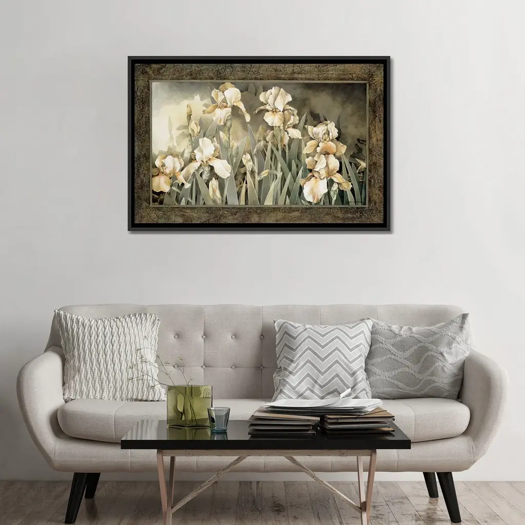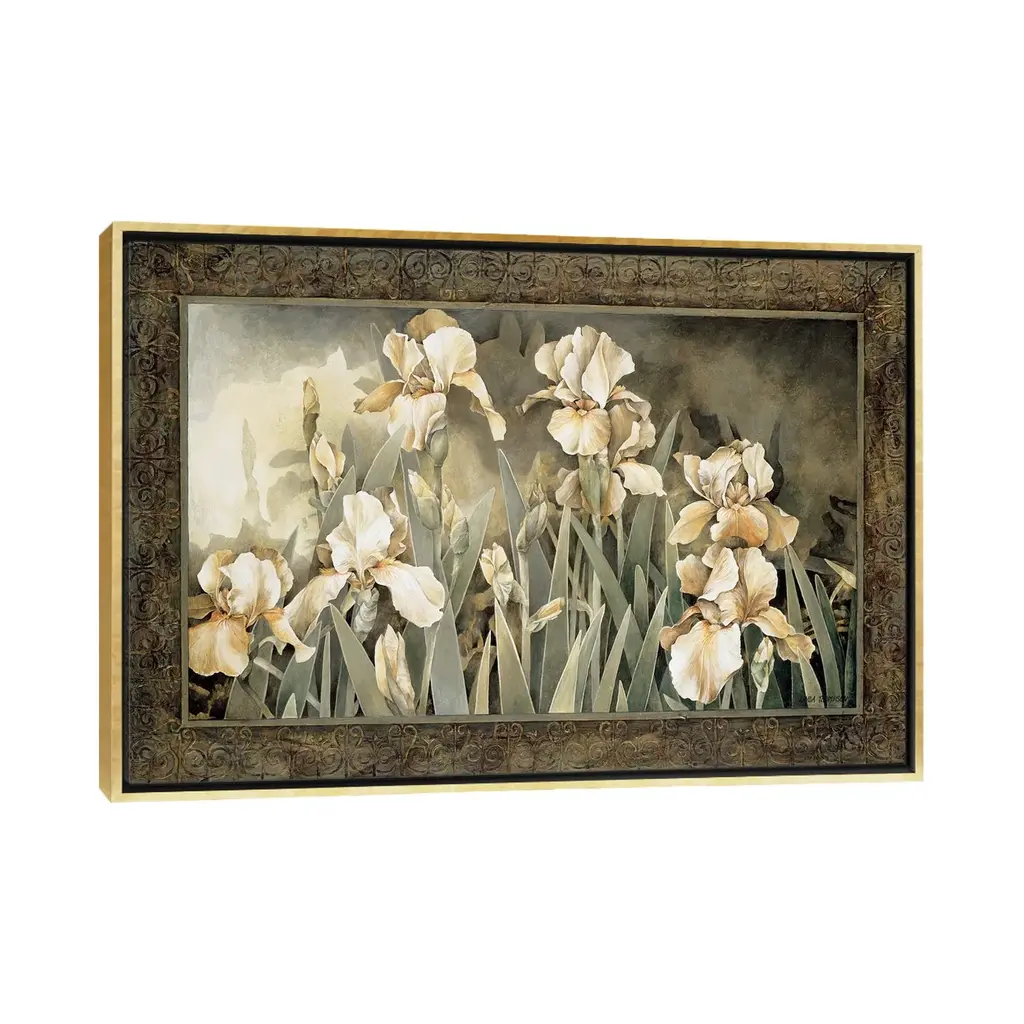 Icanvas "Field Of Irises" By Linda Thompson Framed Canvas Print - Gold - 18x26