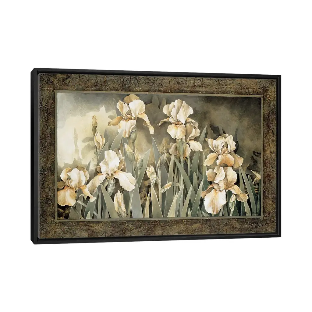 Icanvas "Field Of Irises" By Linda Thompson Framed Canvas Print - Gold - 32x48