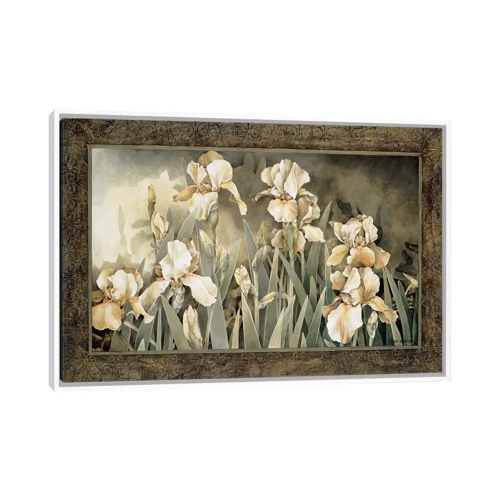 Icanvas "Field Of Irises" By Linda Thompson Framed Canvas Print - White - 18x26