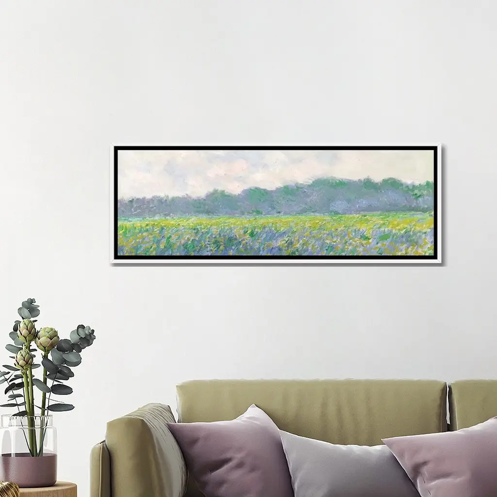 Icanvas "Field Of Yellow Irises At Giverny, 1887 " By Claude Monet Framed Canvas Print - 16x48 - White