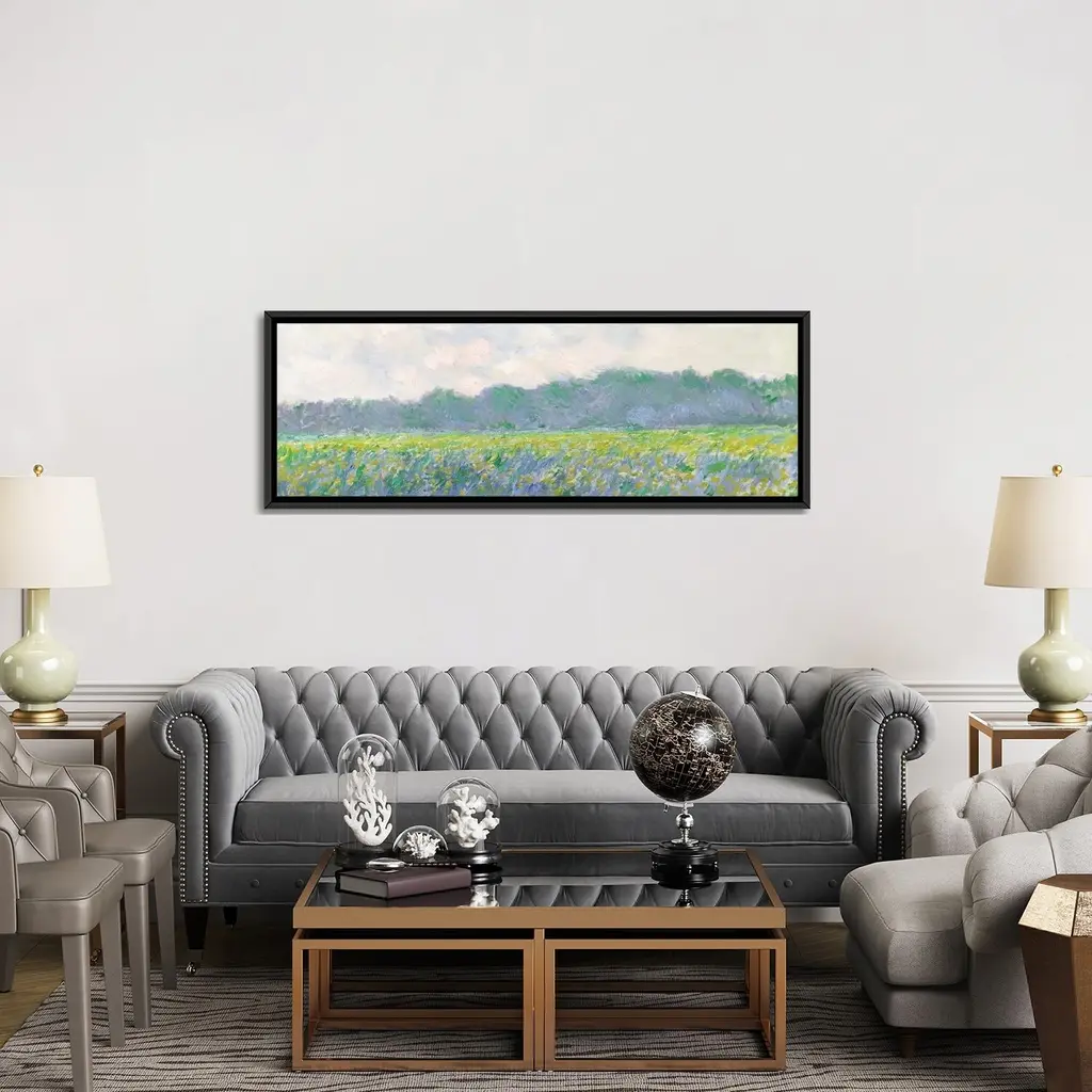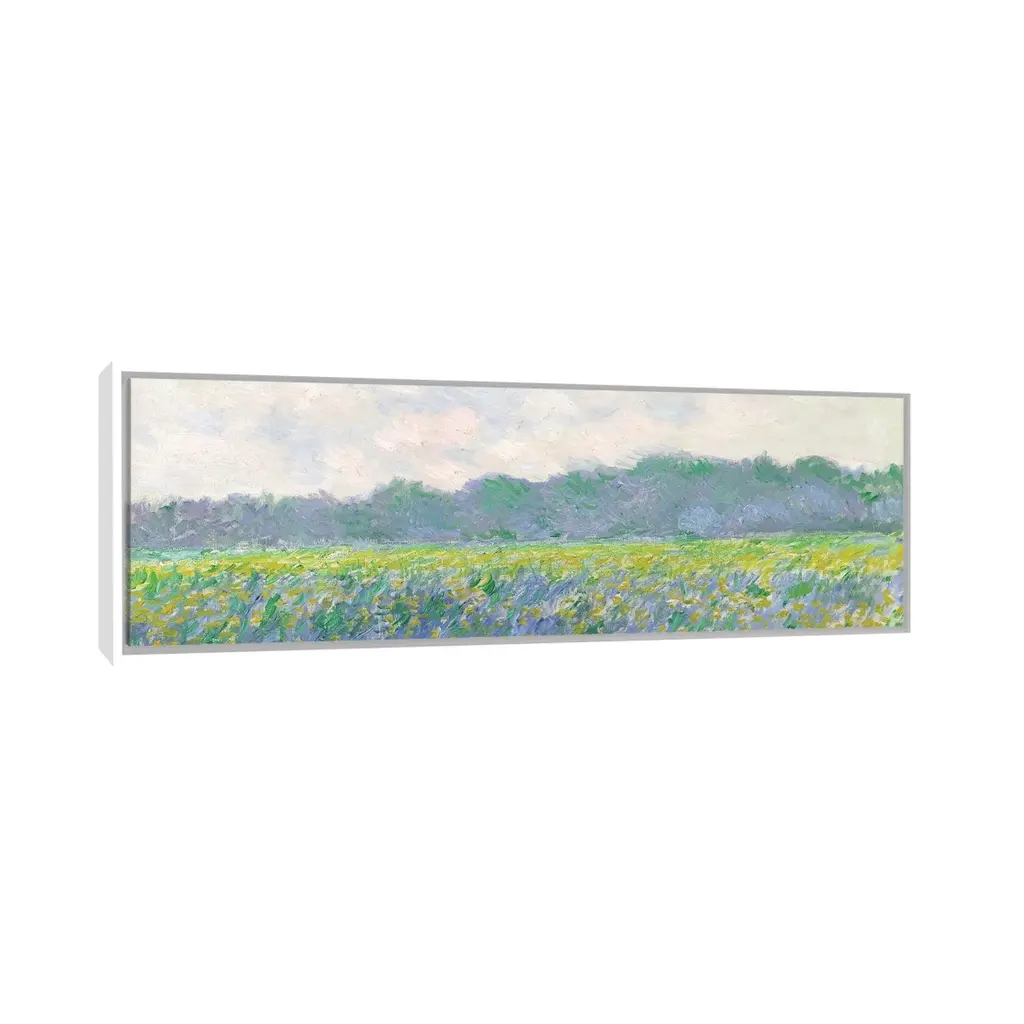 Icanvas "Field Of Yellow Irises At Giverny, 1887 " By Claude Monet Framed Canvas Print - 20x60 - Black