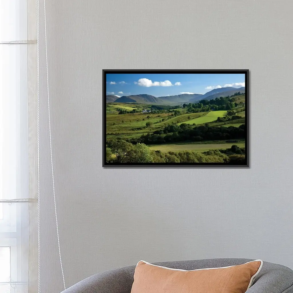 Icanvas "Finn Valley, Co Donegal, Ireland, View Of Verdant Landscape" By Irish Image Collection Framed Canvas Print - Black - 26x40