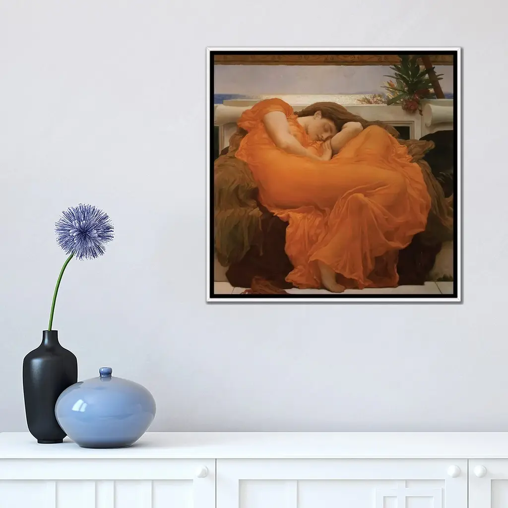 Icanvas "Flaming June, C.1895" By Frederic Leighton Framed Canvas Print - Black - 26x26