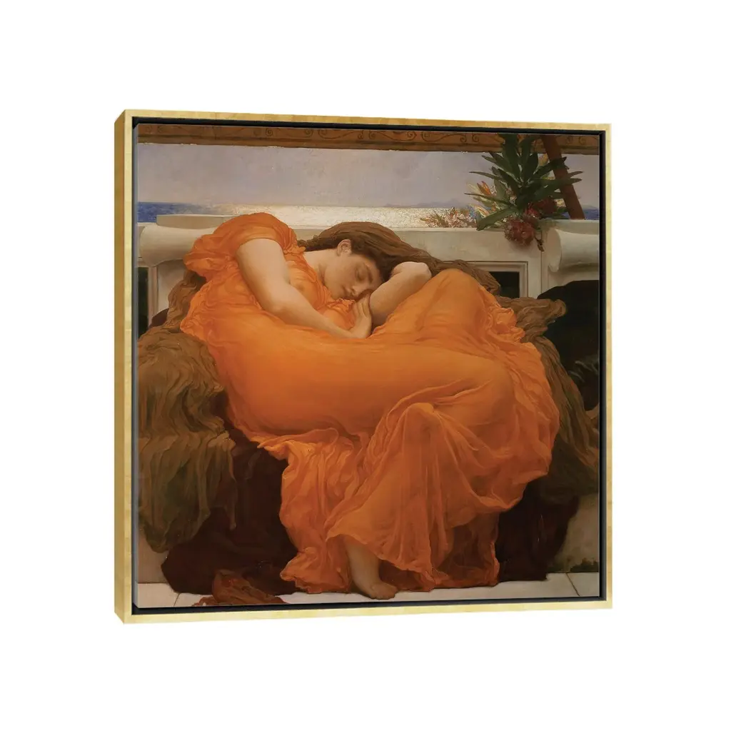 Icanvas "Flaming June, C.1895" By Frederic Leighton Framed Canvas Print - Gold - 12x12