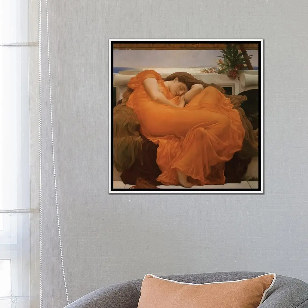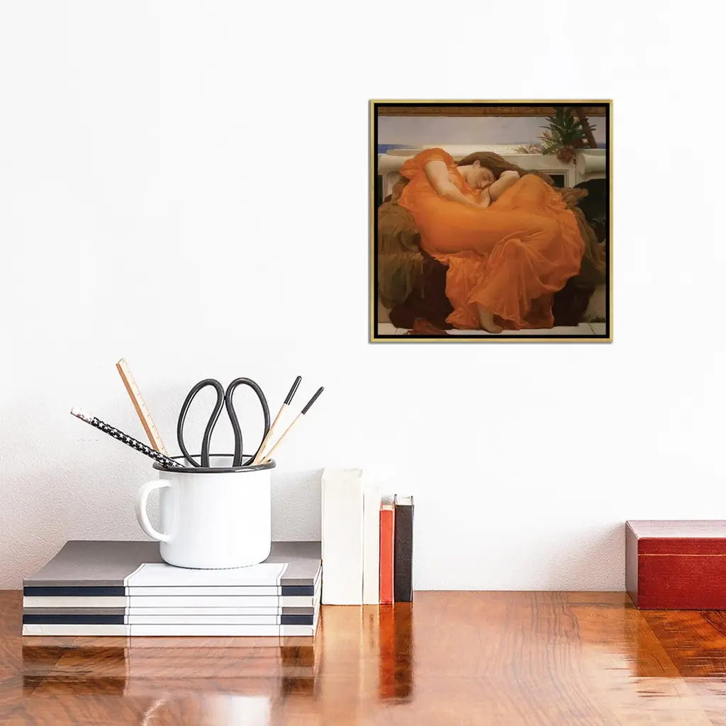 Icanvas "Flaming June, C.1895" By Frederic Leighton Framed Canvas Print - Gold - 18x18