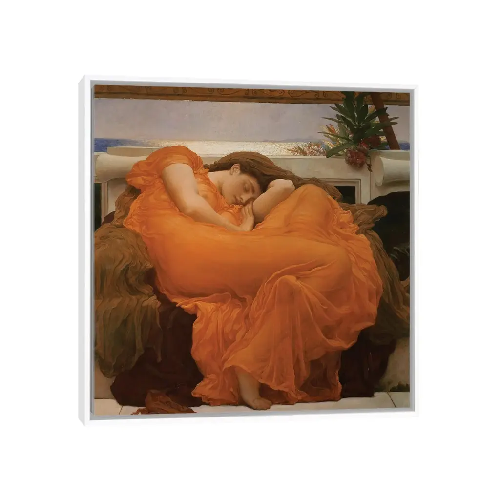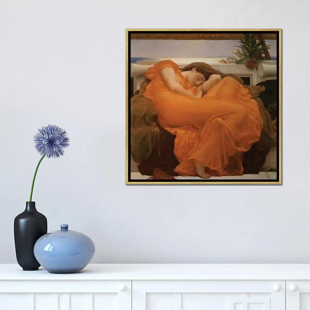 Icanvas "Flaming June, C.1895" By Frederic Leighton Framed Canvas Print - Gold - 37x37