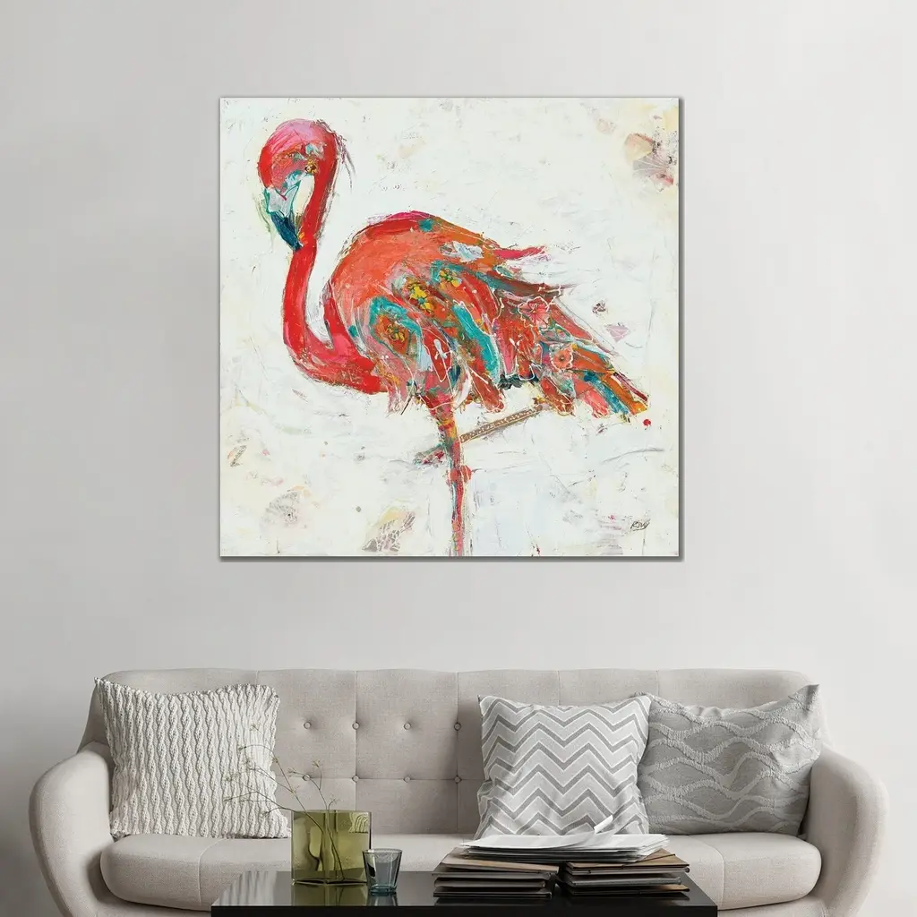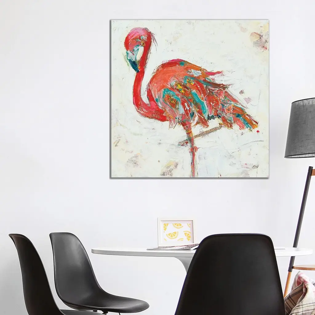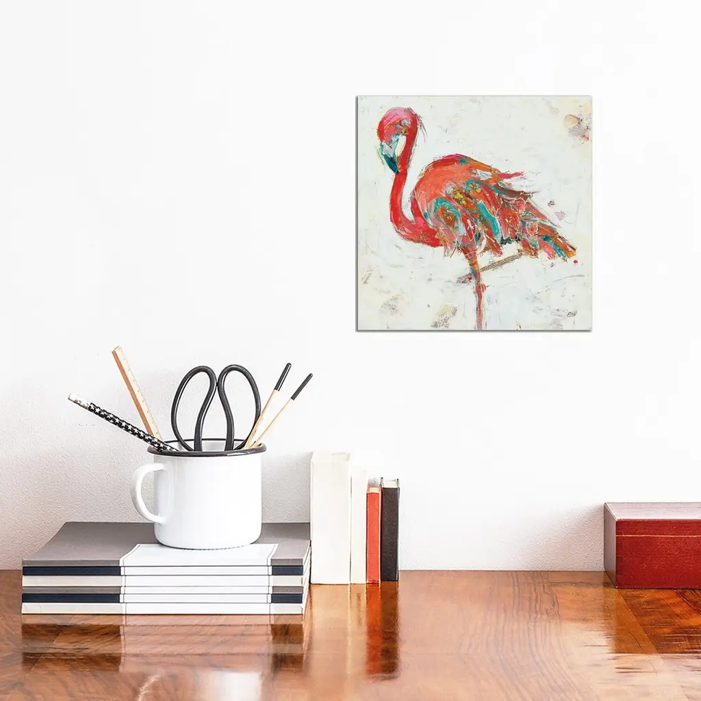 Icanvas "Flamingo On White" By Kellie Day Canvas Print - 12x12x0.75