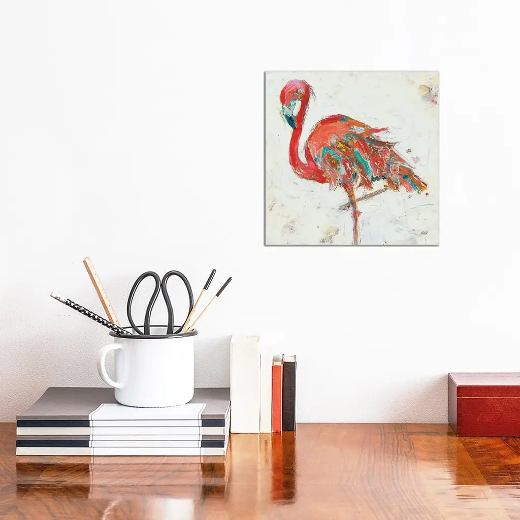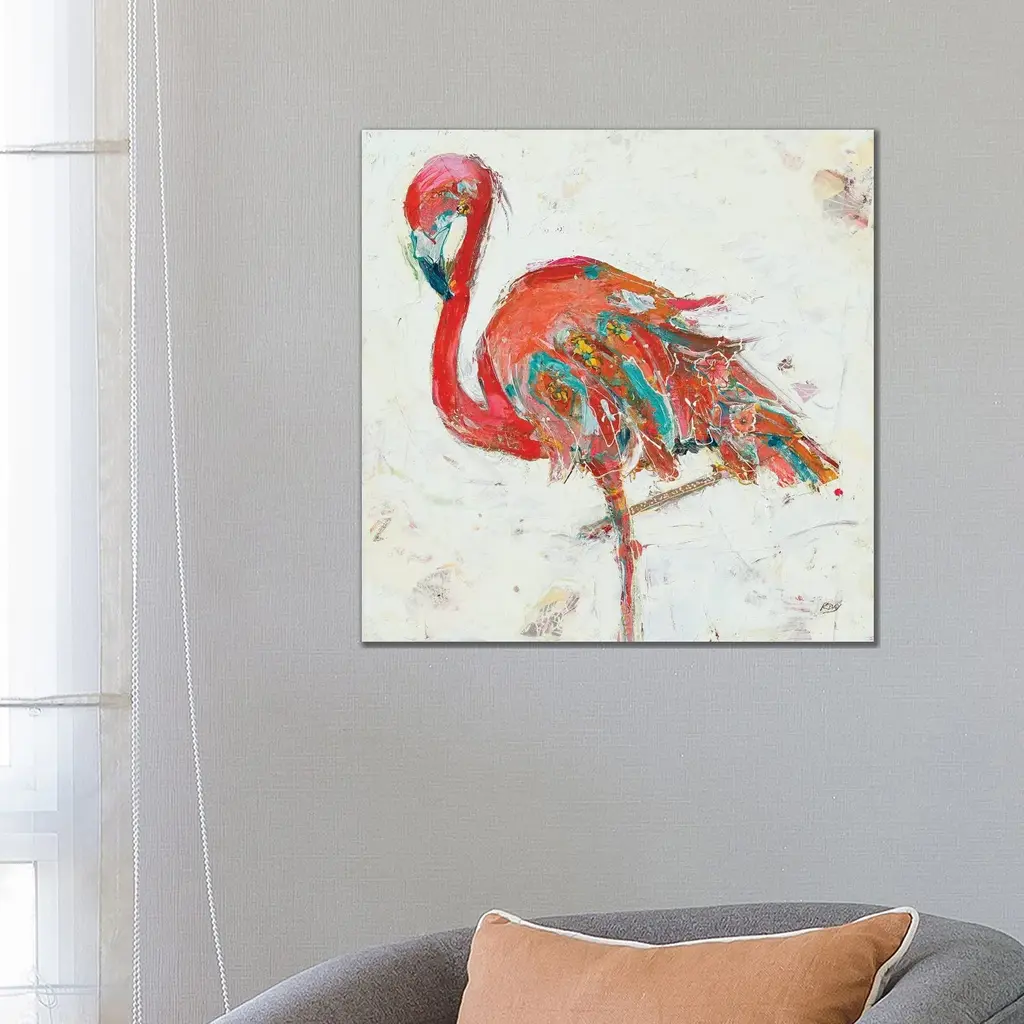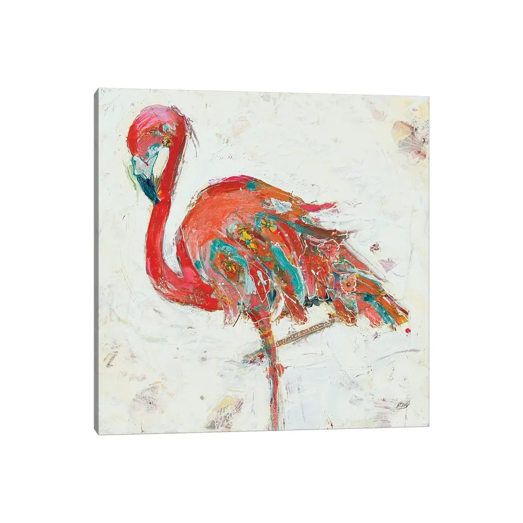 Icanvas "Flamingo On White" By Kellie Day Canvas Print - 18x18x1.5