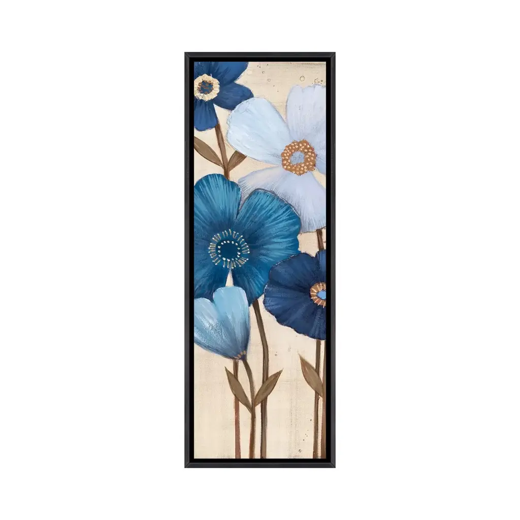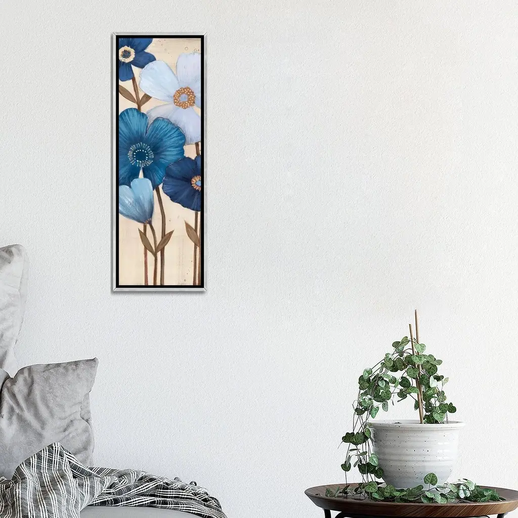 Icanvas "Fleurs Bleues I" By Maja Framed - 36x12 - Charcoal