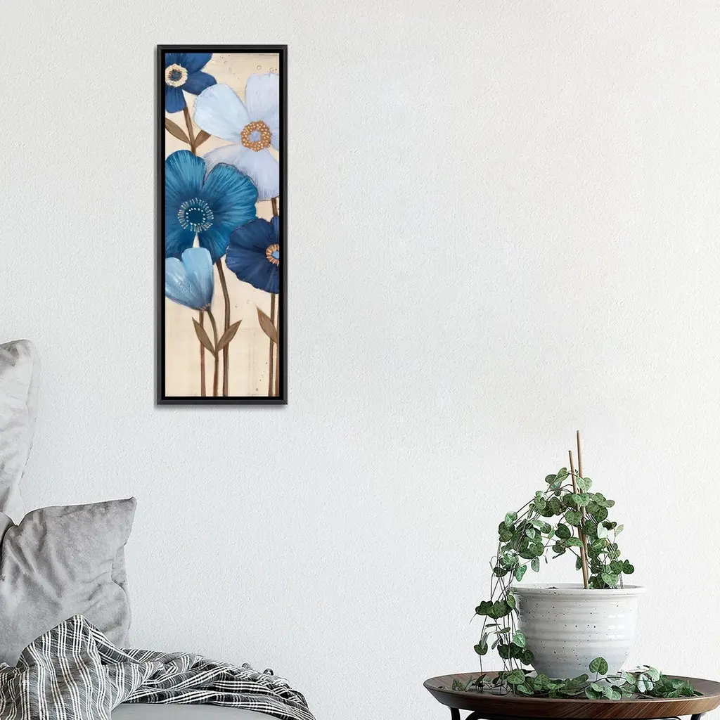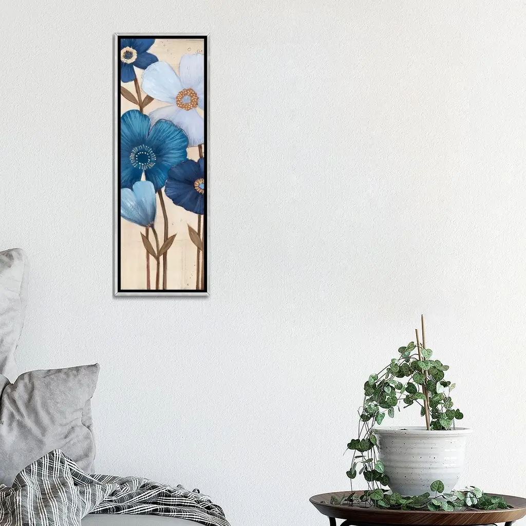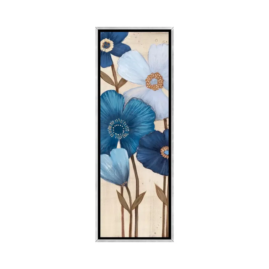 Icanvas "Fleurs Bleues I" By Maja Framed - 48x16 - Charcoal