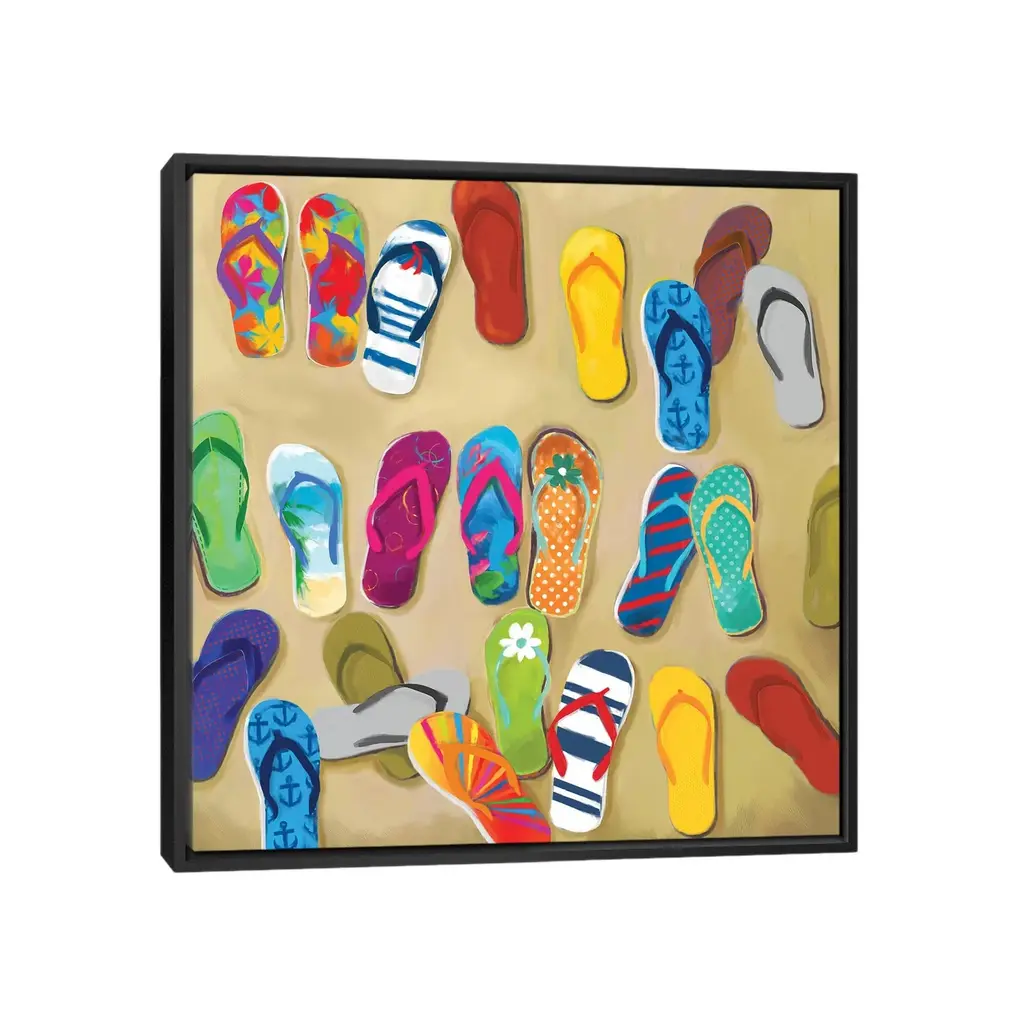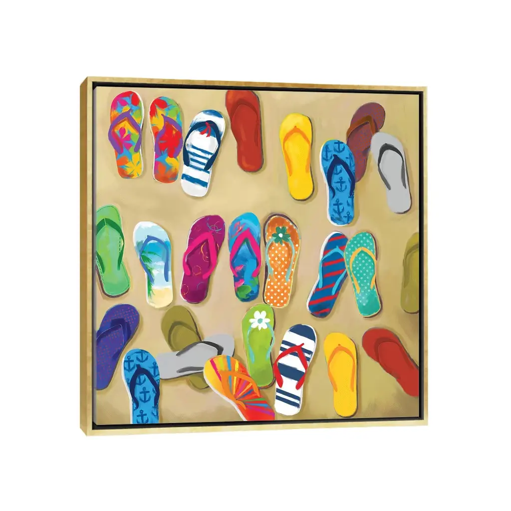 Icanvas "Flip Flops Ii" By Drako Fontaine Framed Canvas Print - White - 12x12
