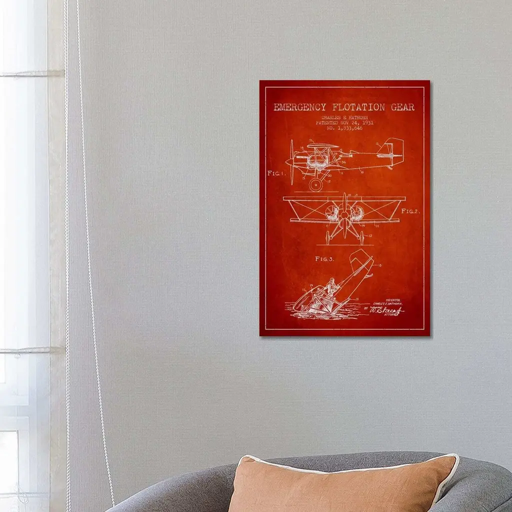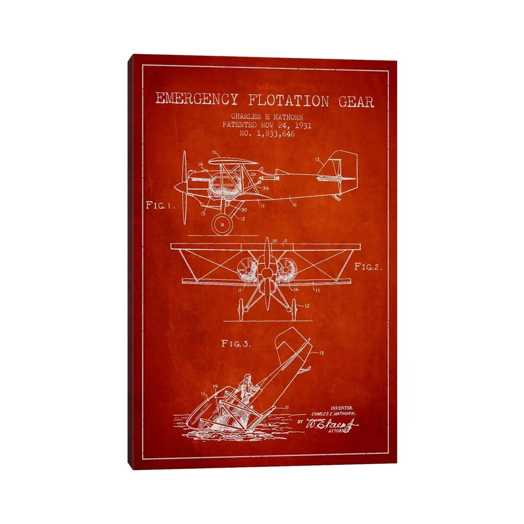 Icanvas "Float Plane Red Patent Blueprint" By Aged Pixel Canvas Print - 40x26x1.5