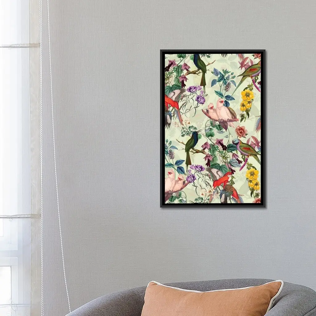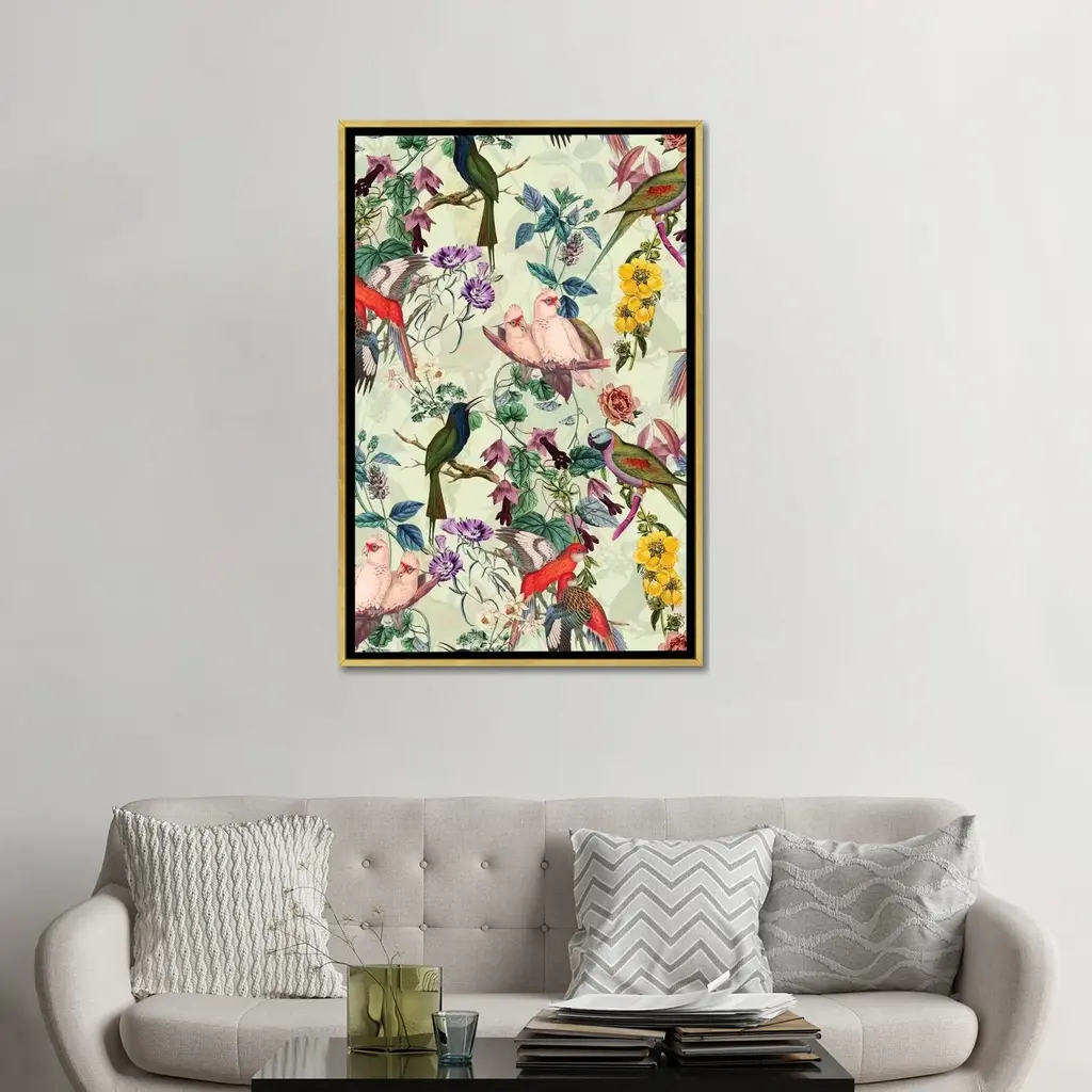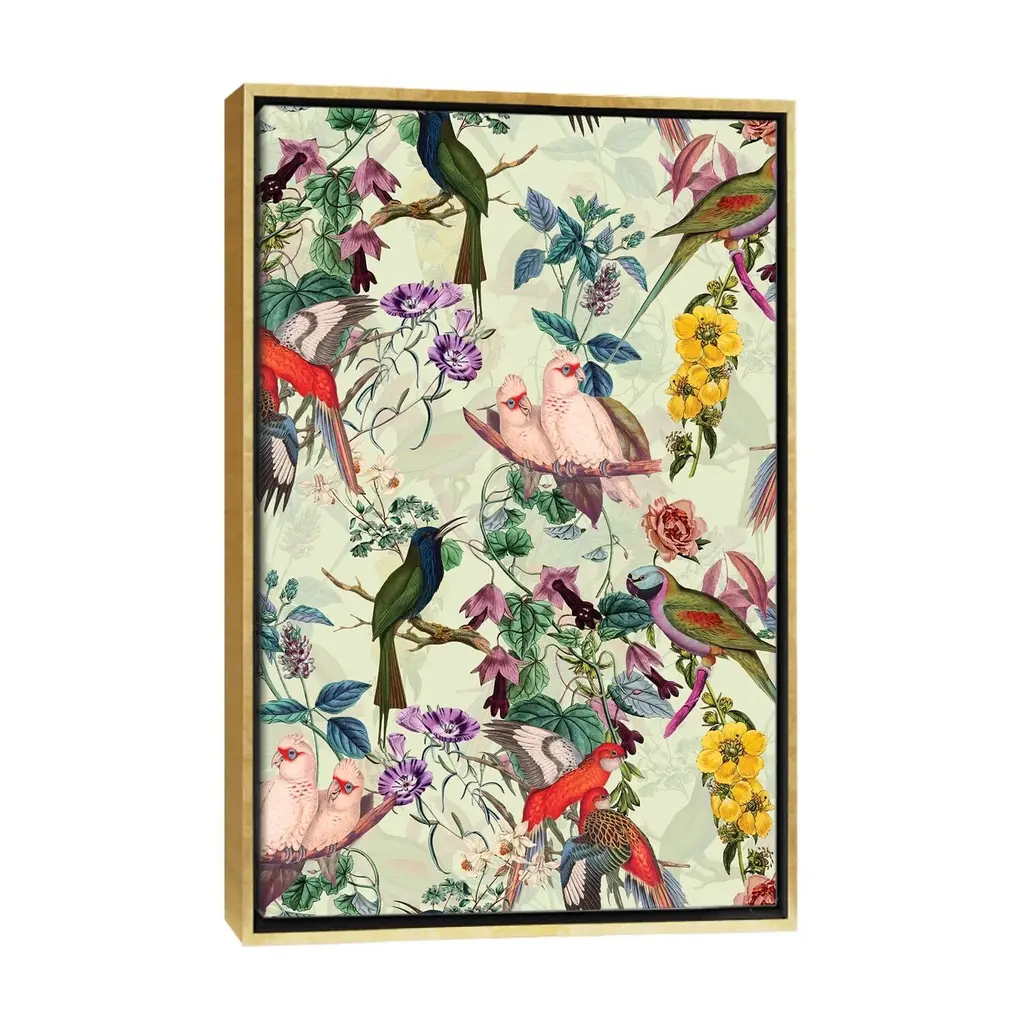 Icanvas "Floral And Birds Viii" By Burcu Korkmazyurek Framed Canvas Print - Gold - 26x18