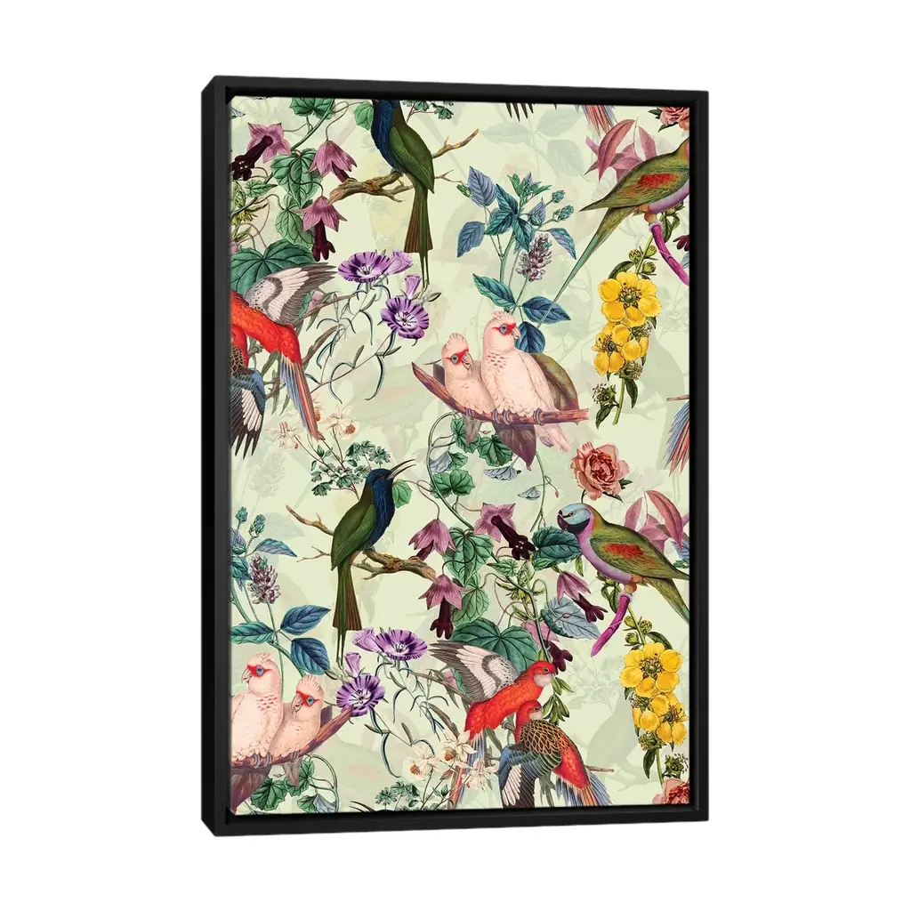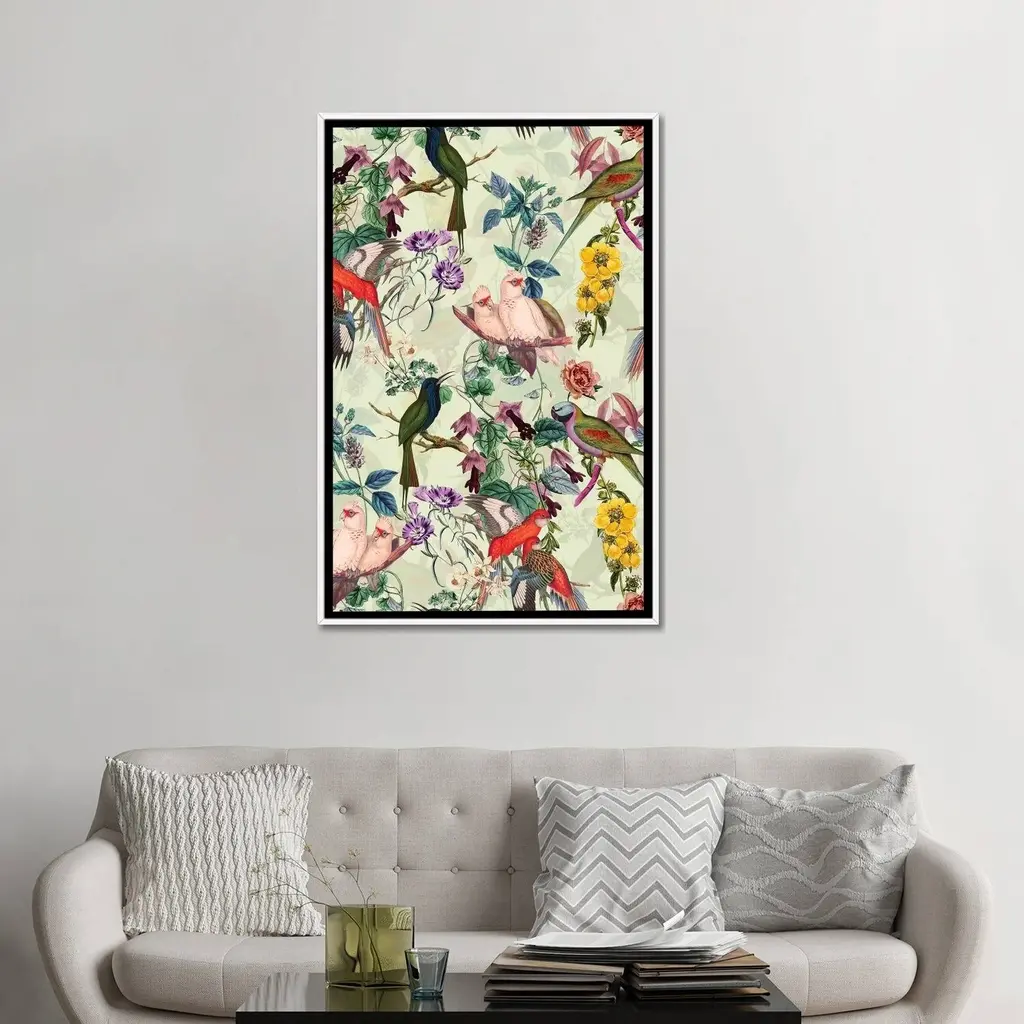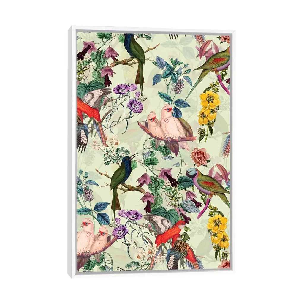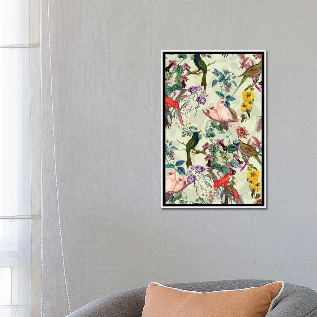 Icanvas "Floral And Birds Viii" By Burcu Korkmazyurek Framed Canvas Print - Gold - 26x18