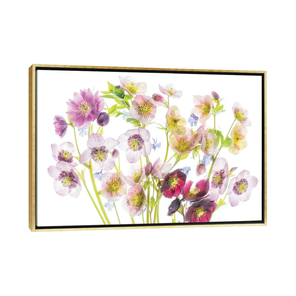 Add a touch of elegance and sophistication to your space with the iCanvas "Floral Display" by Dennis Frates Framed canvas artwork. Crafted in the USA with artist-grade canvas, this Giclee artwork offers the texture, look, and feel of a fine-art painting. The professionally hand-stretched canvas is securely stapled over North American pine-wood bars in a Gallery Wrap style, which is commonly used by artists in galleries. Mounted to a 2-inch thick, elegant hardwood frame, the artwork appears to "float" with a 3/8" space between the art and frame. The fade-resistant archival inks ensure vibrant colors that will last for decades, even when exposed to strong light. With its contemporary and uncompromising style, this artwork will add brilliance and exceptional detail to any room.Features: