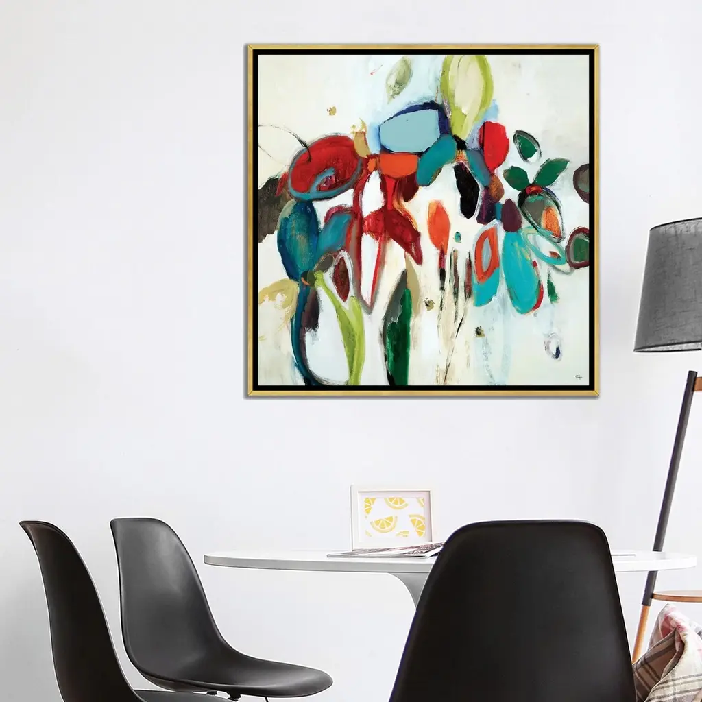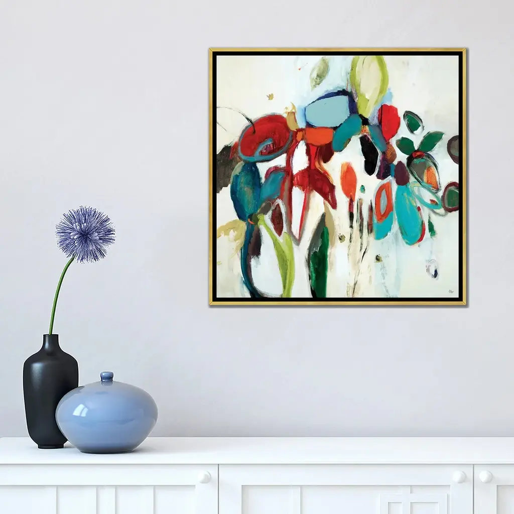 Icanvas "Floral Hints" By Lisa Ridgers Framed Canvas Print - Black - 12x12
