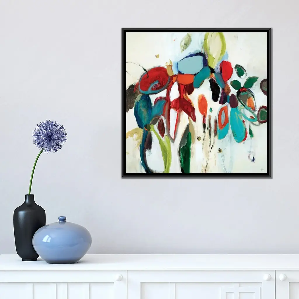 Icanvas "Floral Hints" By Lisa Ridgers Framed Canvas Print - Gold - 18x18